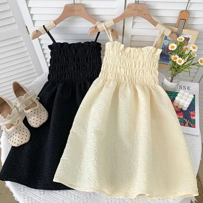 夏季新款压褶花纹木耳边褶皱修身显瘦小个子吊带连衣裙短裙女
