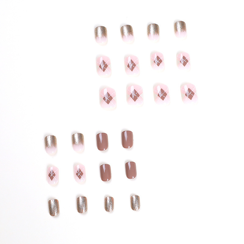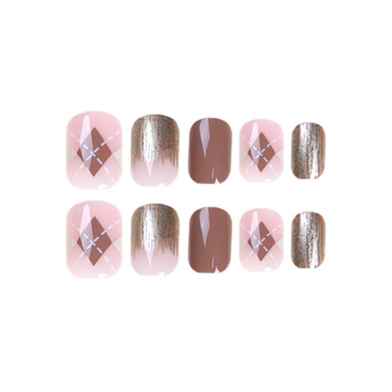 穿戴甲菱格镜面棕色美甲短款简约渐变欧美跨境爆款甲片批发指甲片