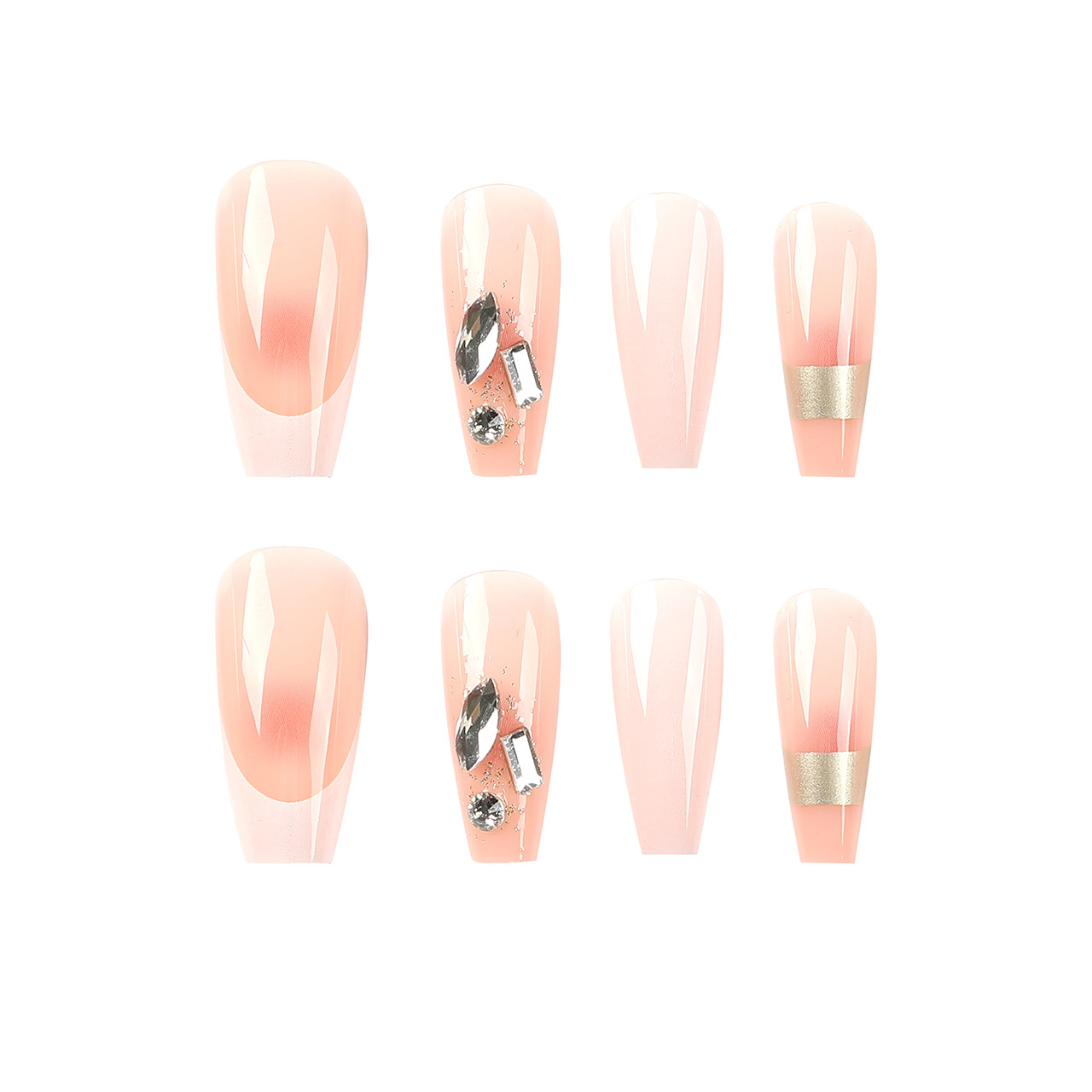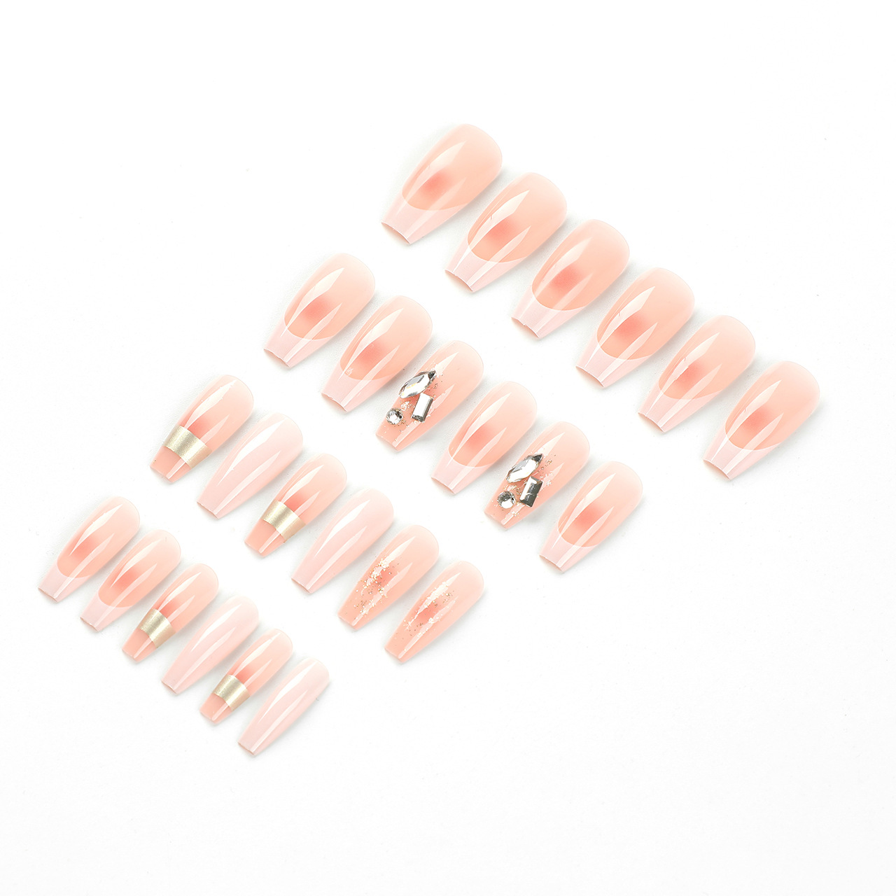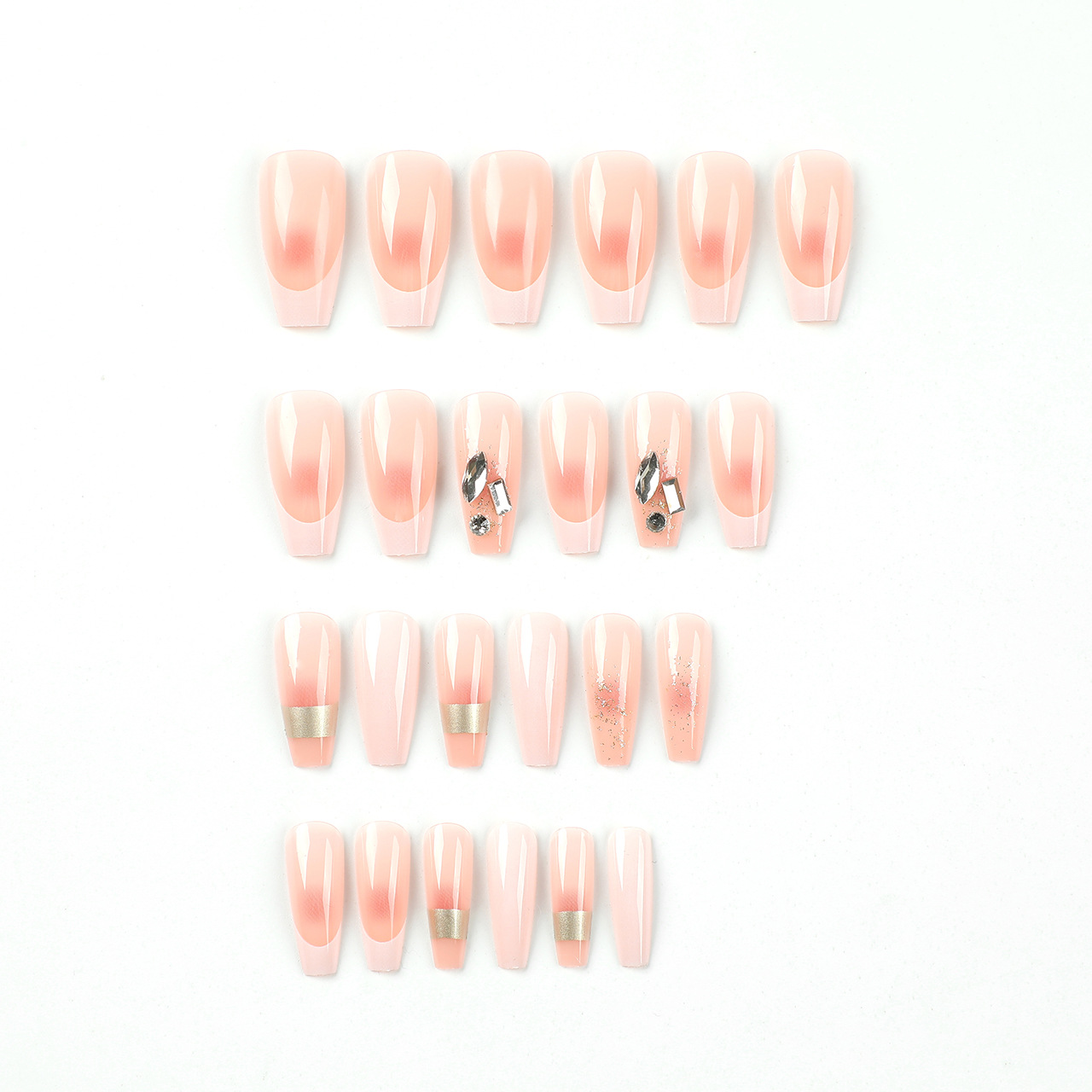 法式穿戴甲粉嫩白边腮红甲甲片闪粉水钻假指甲贴片温柔大气简约款