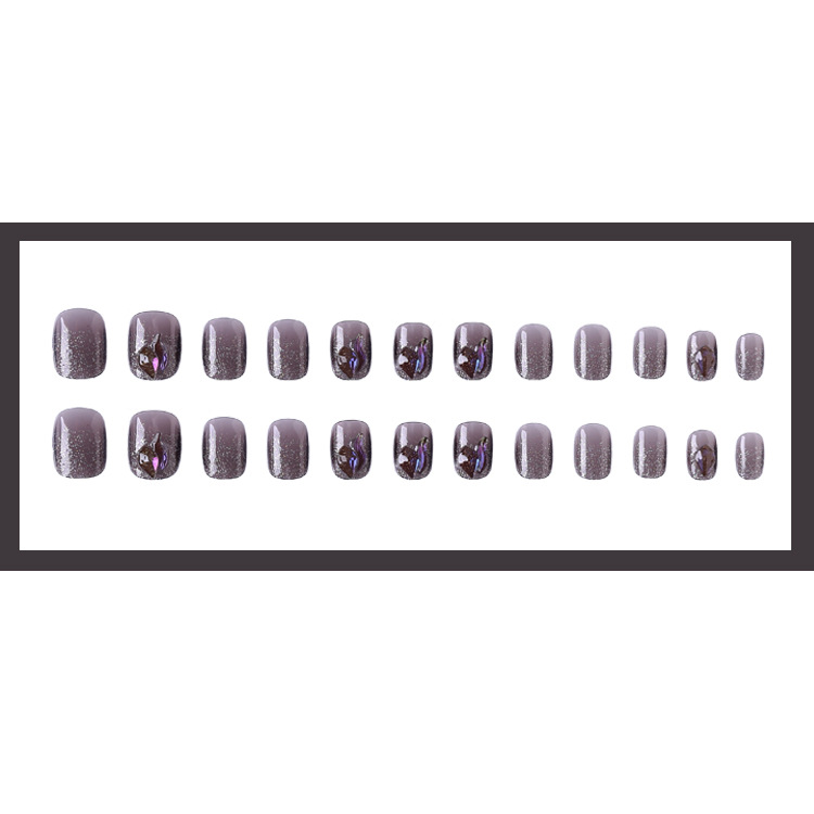 美甲贴可拆卸短款暗夜精灵穿戴美甲酷黑带钻假指甲贴美甲成品24片