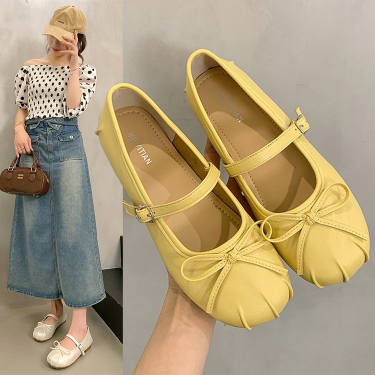 平底玛丽珍鞋女夏季2025新款软底复古浅口豆豆鞋配裙法式芭蕾单鞋