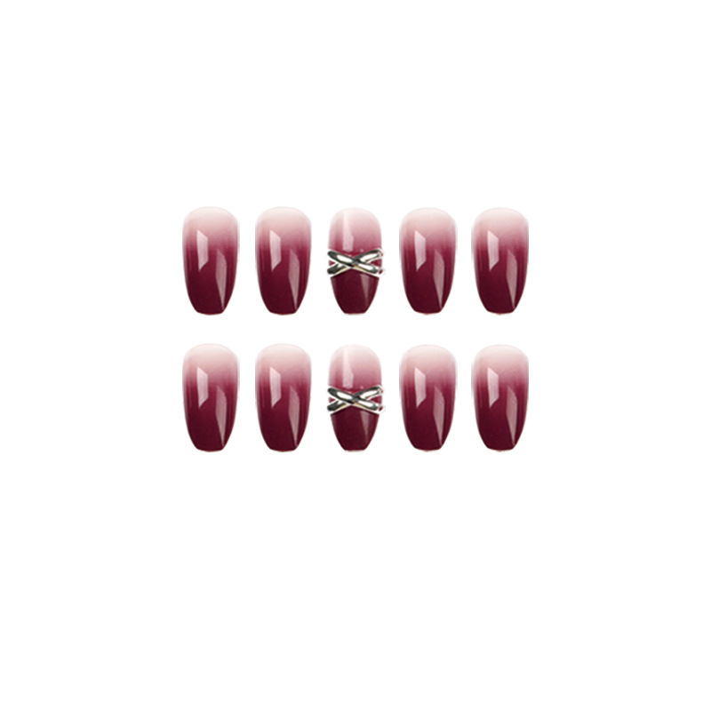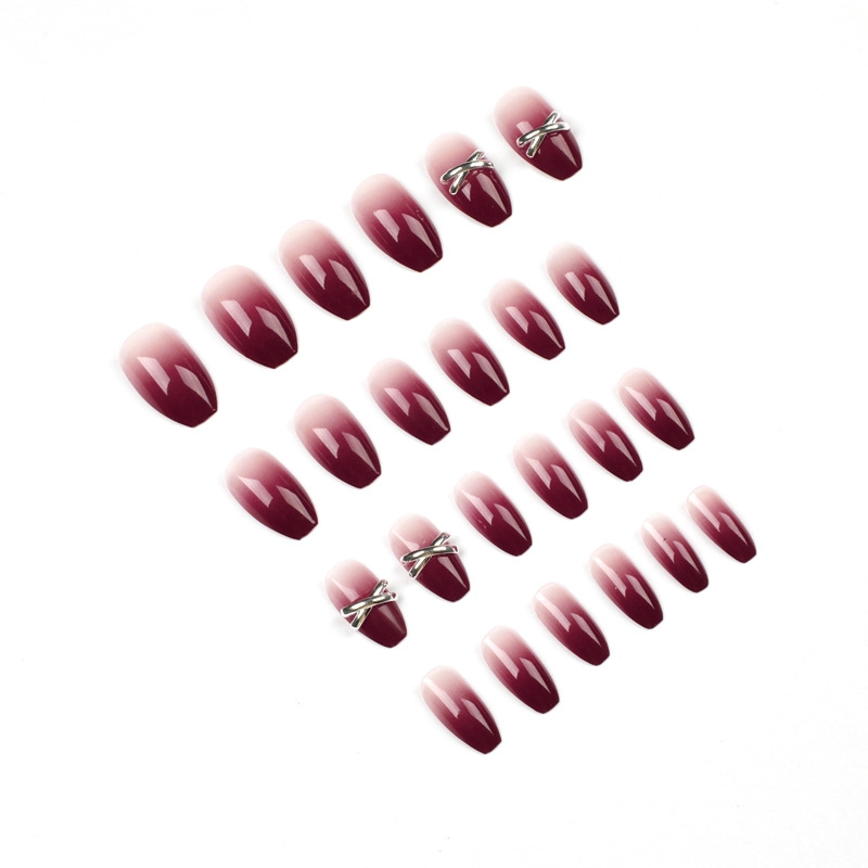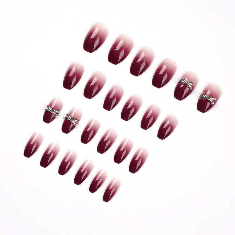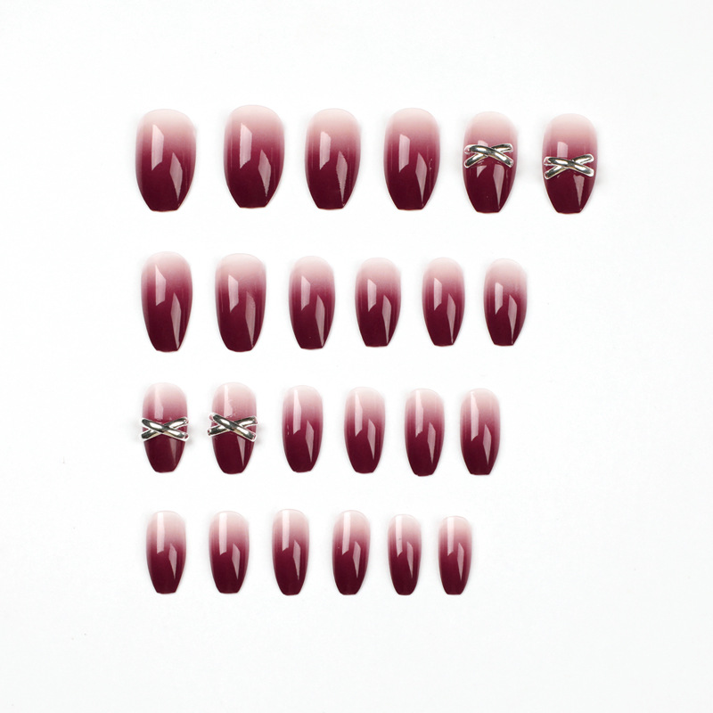 假指甲片批发杨梅冰冰指甲片梅子色渐变银条美甲甲片批发甲片成品