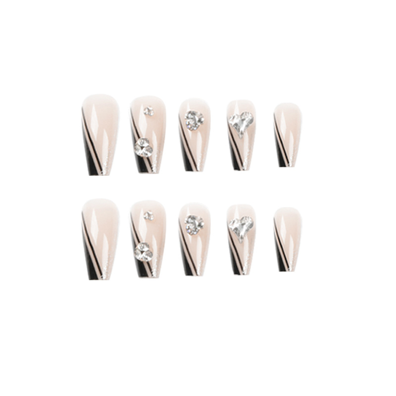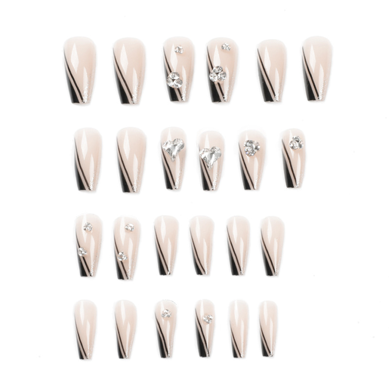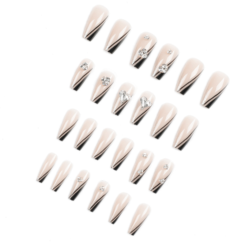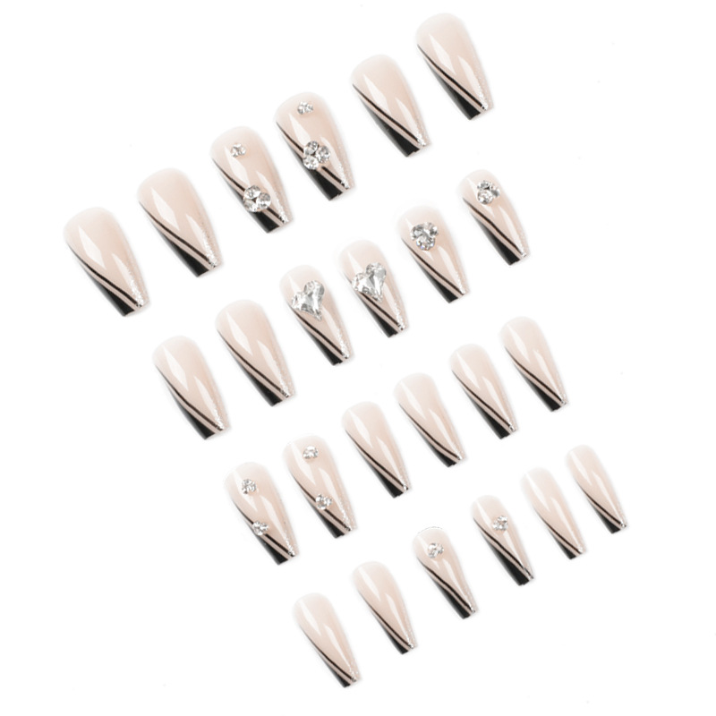 穿戴甲批发穿戴甲 法式黑斜边辣妹穿戴甲爱心水钻堆钻可拆卸美甲
