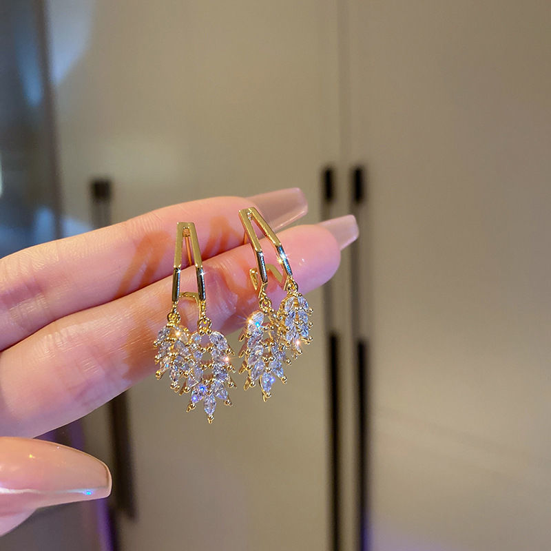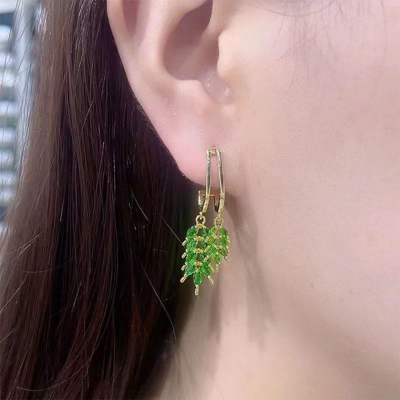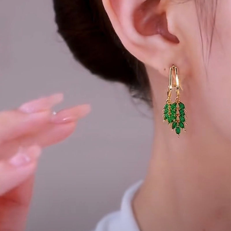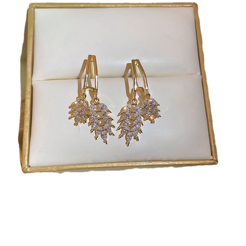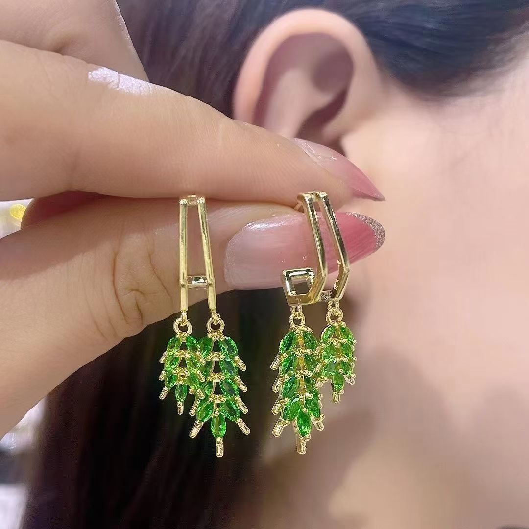 S925银针树叶耳环新款潮日韩高级感精致简约耳坠气质感耳饰女