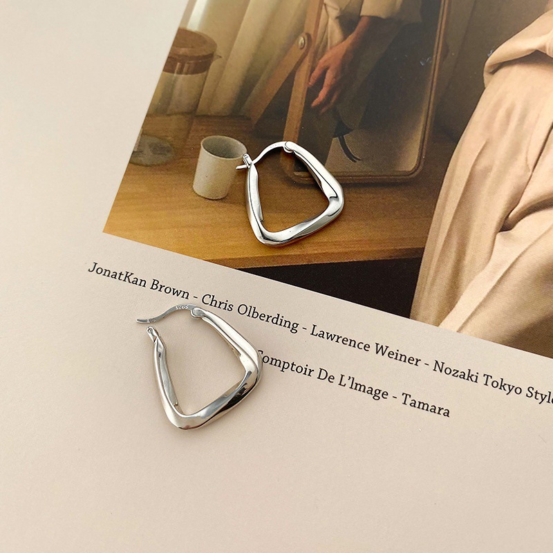 帝丰法式高级感方形耳圈s999纯银小众设计耳环年复古金属耳饰