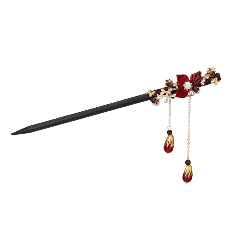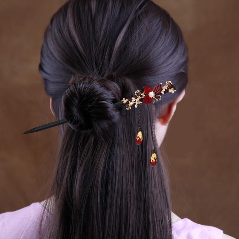 古风仿黑檀木簪流苏步摇发簪女头饰盘发汉服配饰古装发钗挽发饰品