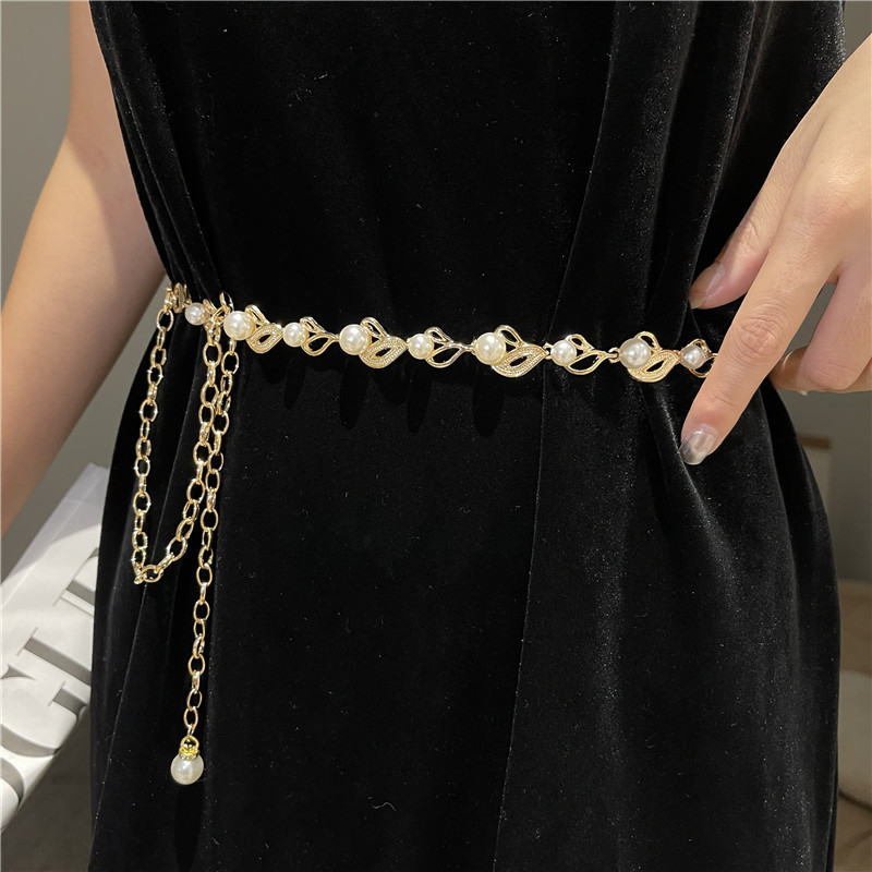 金色珍珠腰链女配韩版西装百搭装饰细腰带金属链条毛衣裙子配饰潮