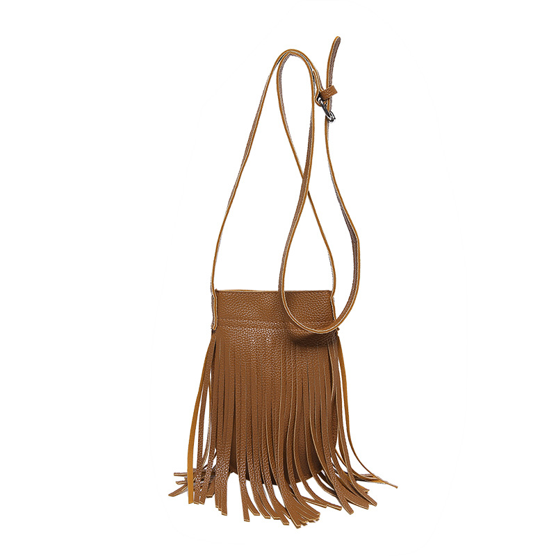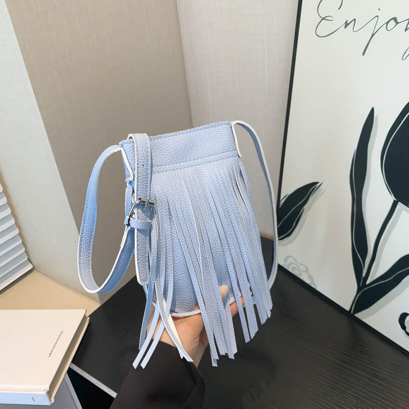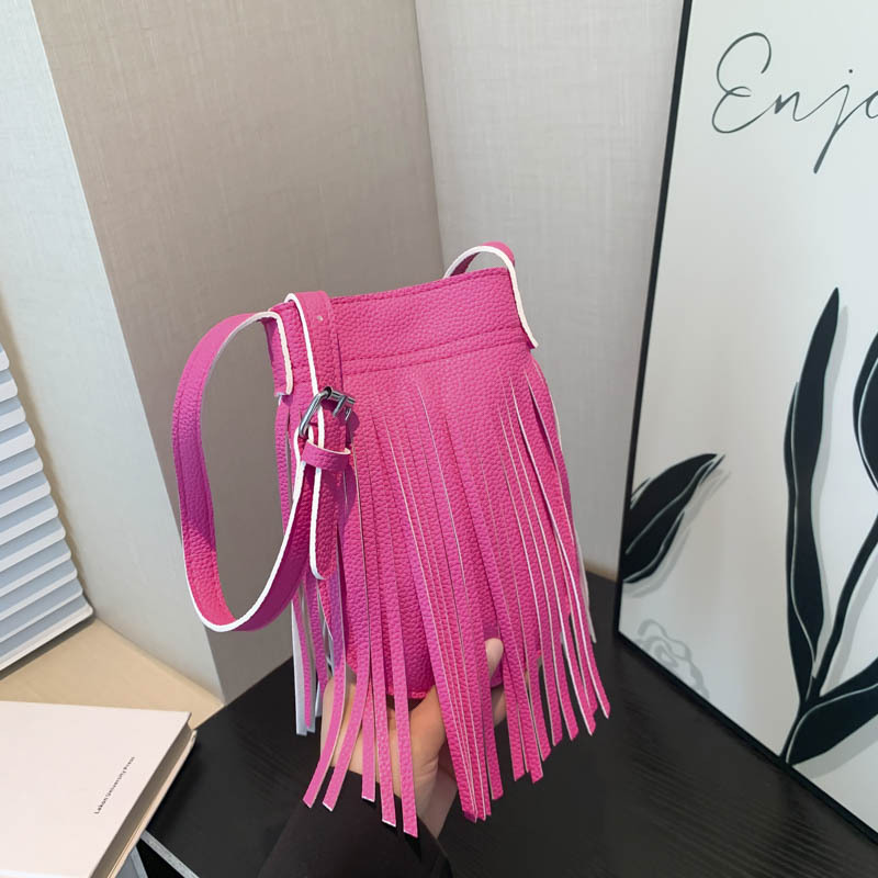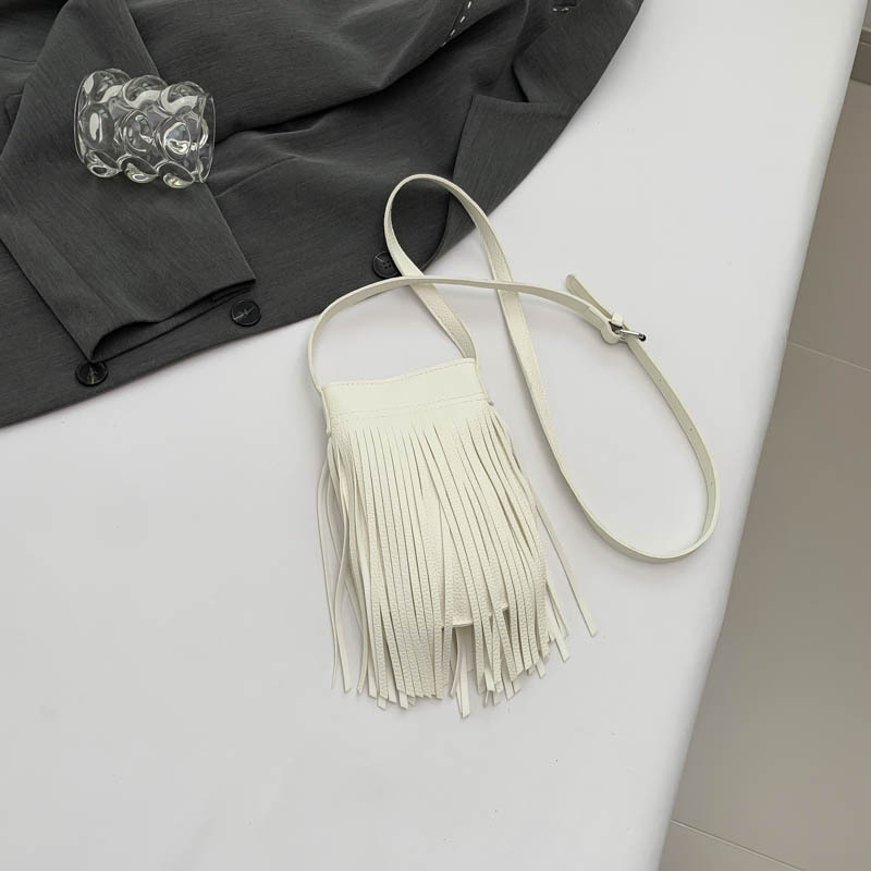 新款散步斜挎流苏手机包夏季纯色竖款轻便时尚百搭单肩手机袋