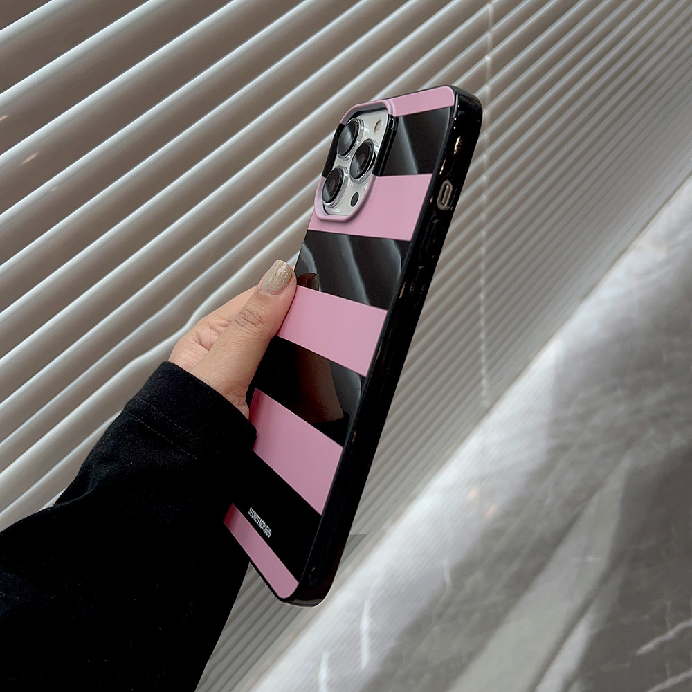 适用苹果15pro max手机壳ins风粉条纹iPhone13简约11硅胶12彩绘14