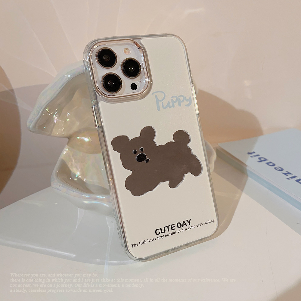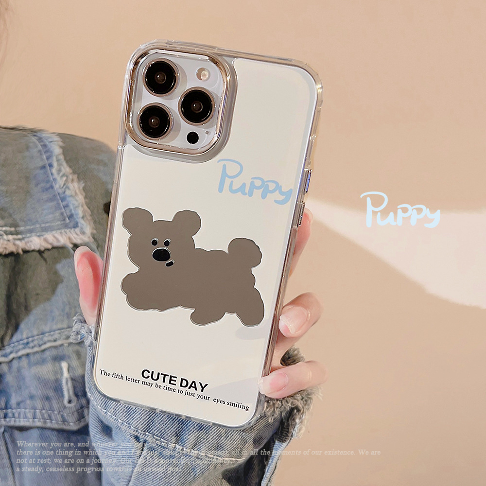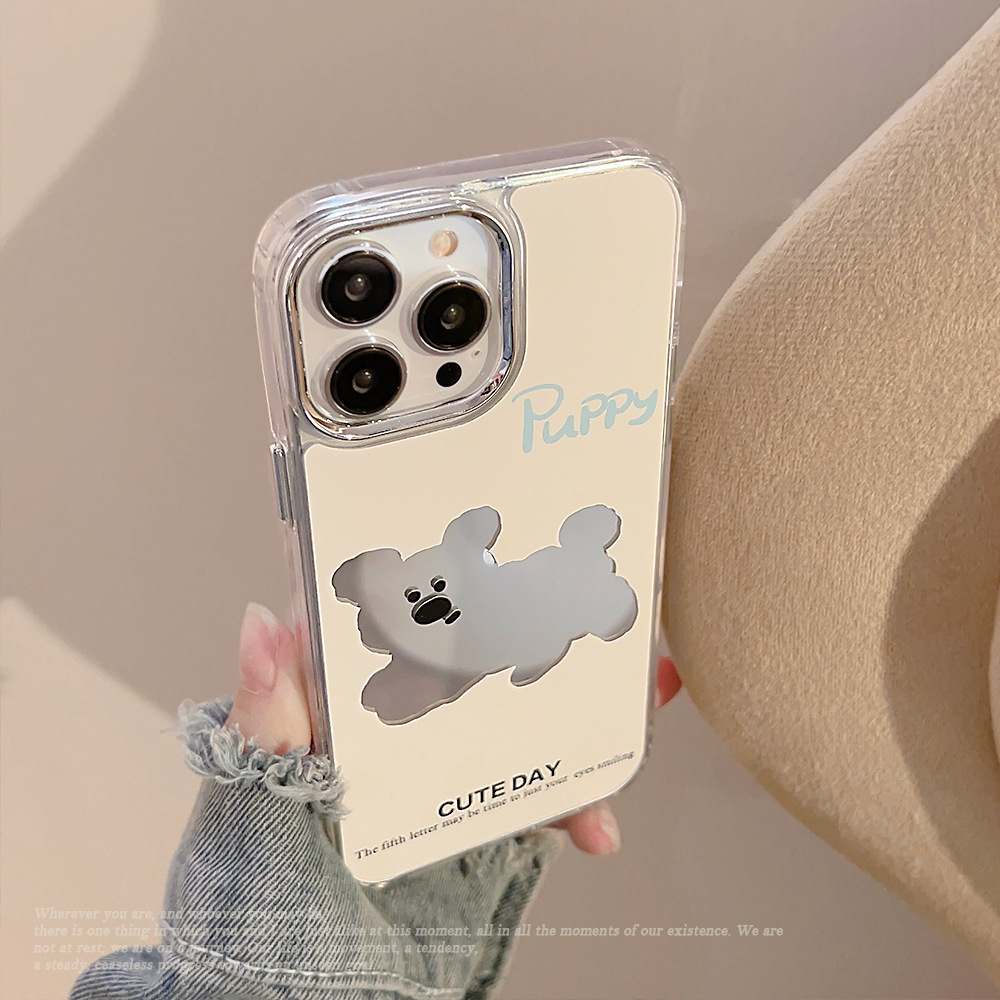 狗狗电镀镜面iphone14苹果手机壳13promax日韩卡通11补妆镜15适用