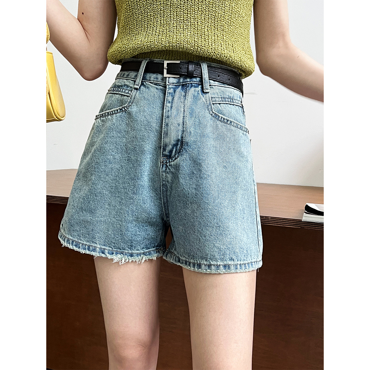 水洗毛边牛仔短裤女夏季显瘦休闲百搭外穿直筒高腰热裤A12