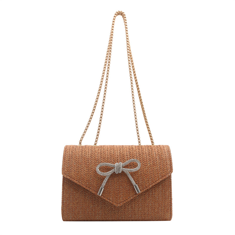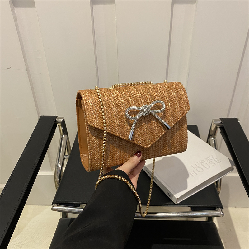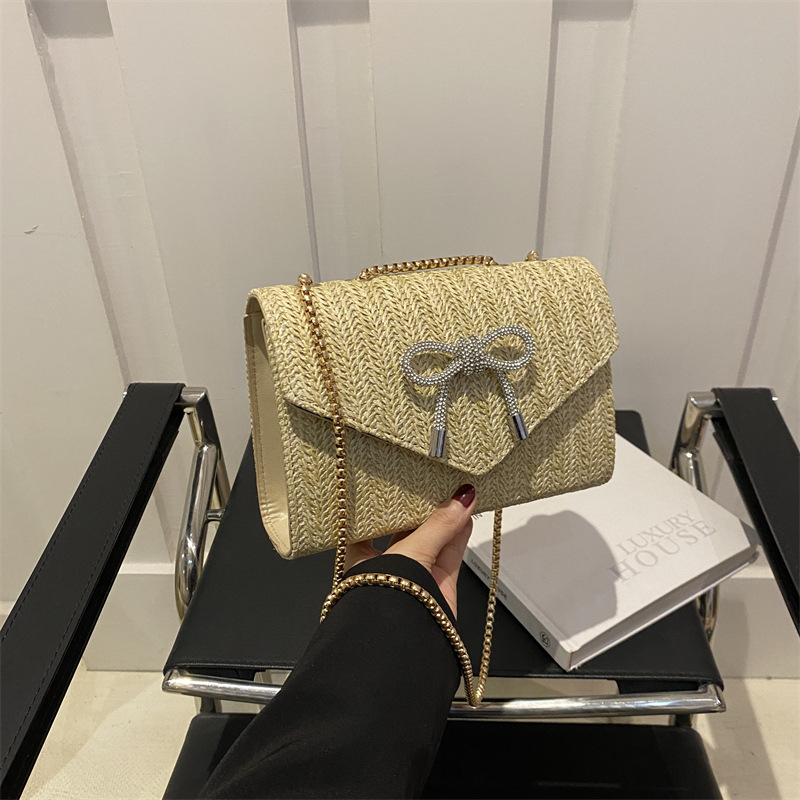 高级感水钻链条包包今年流行法式小众蝴蝶结手提包斜挎草编小方包
