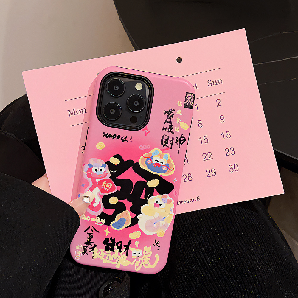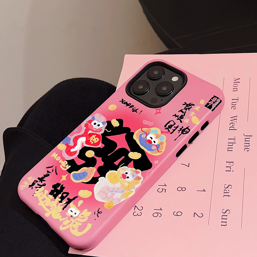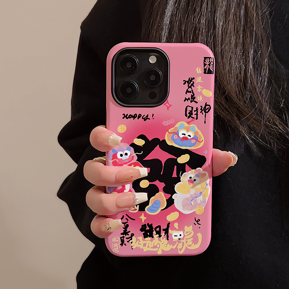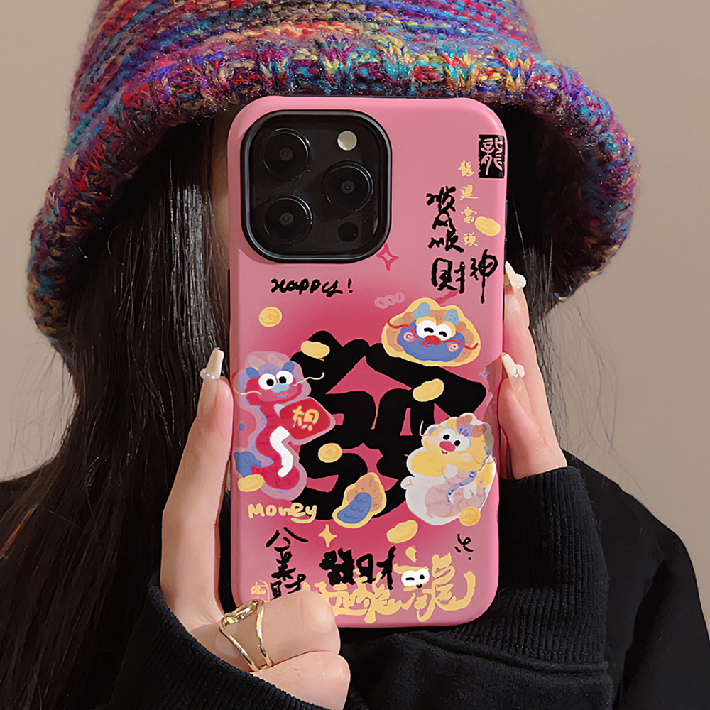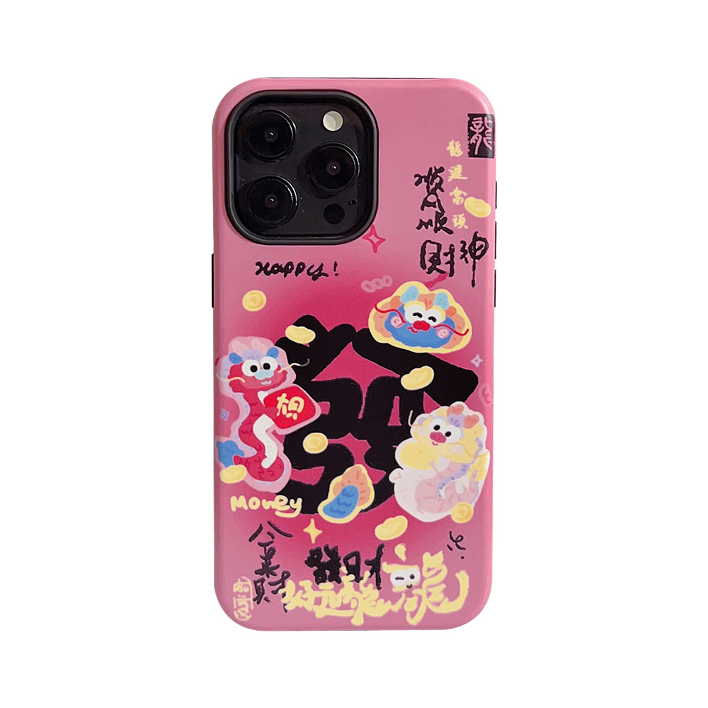 少女粉色龙年发财iPhone15苹果手机壳14promax适用13硬壳12菲林11