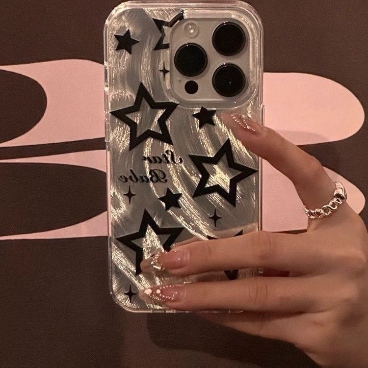 黑色星适用苹果14promax日韩iPhone13手机壳15plus防摔12硬xsmax