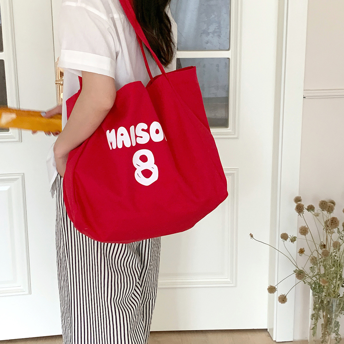加厚大容量托特包韩版慵懒风单肩帆布包大红色简约字母学生帆布袋