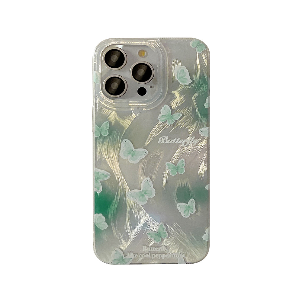 绿色晕染蝴蝶适用iphone14苹果15promax手机壳小清新12气质13夏日