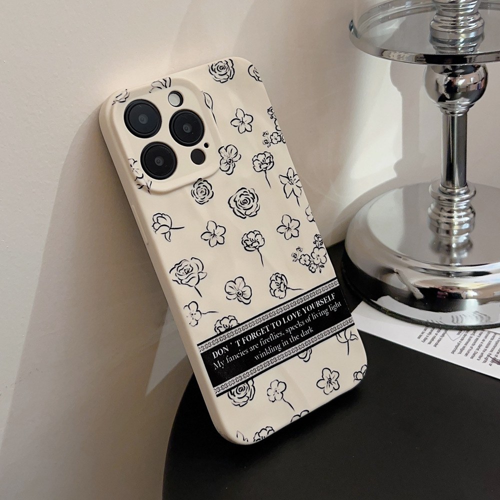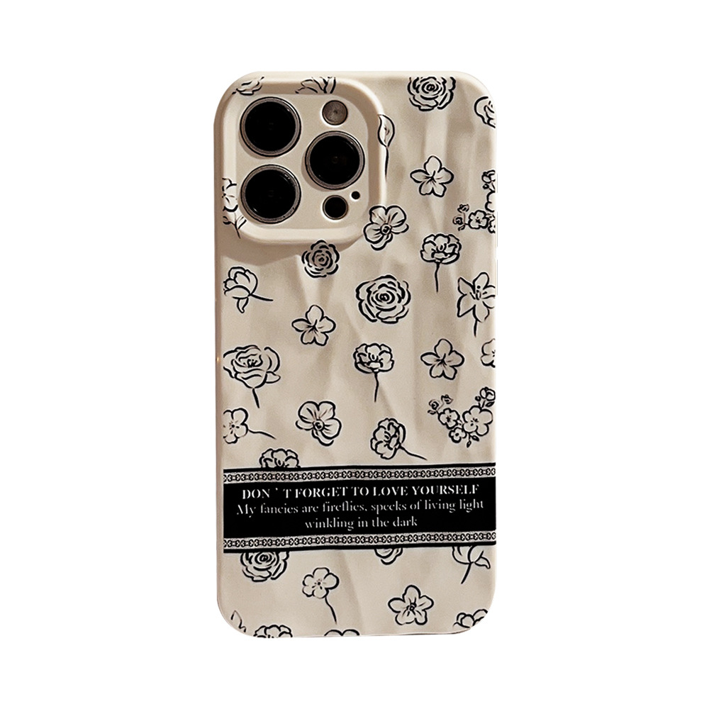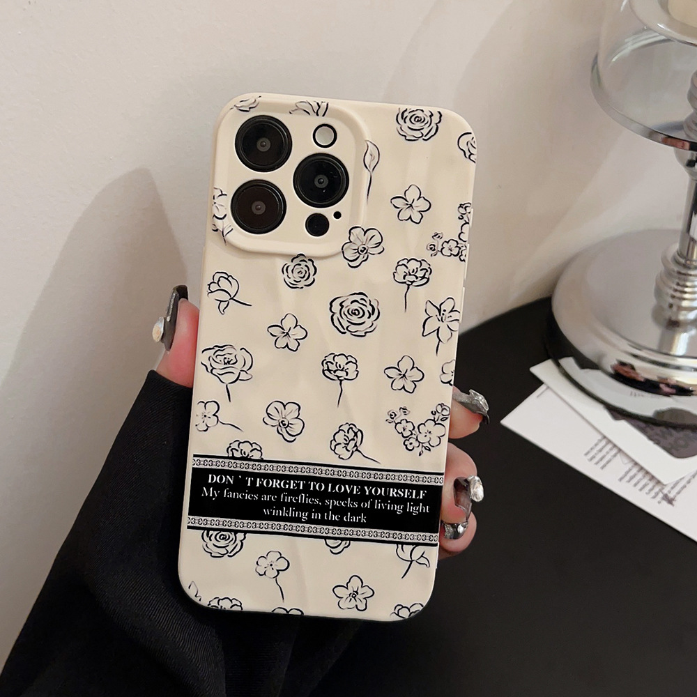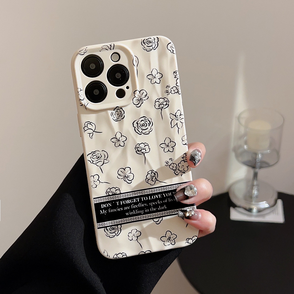 小香风素描花朵适用苹果15手机壳13褶皱iPhone14ProMax全包12软11