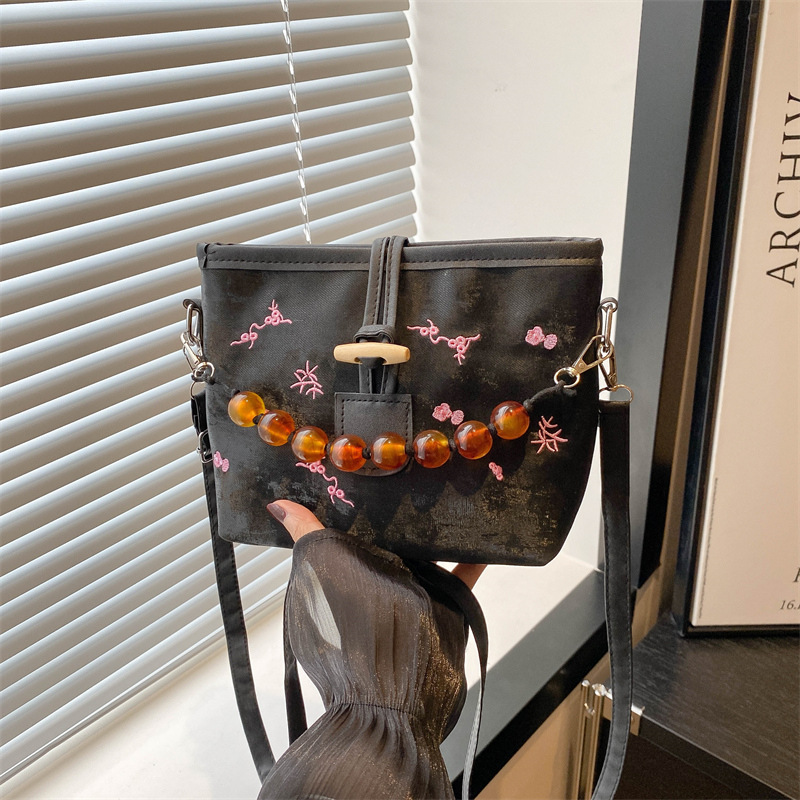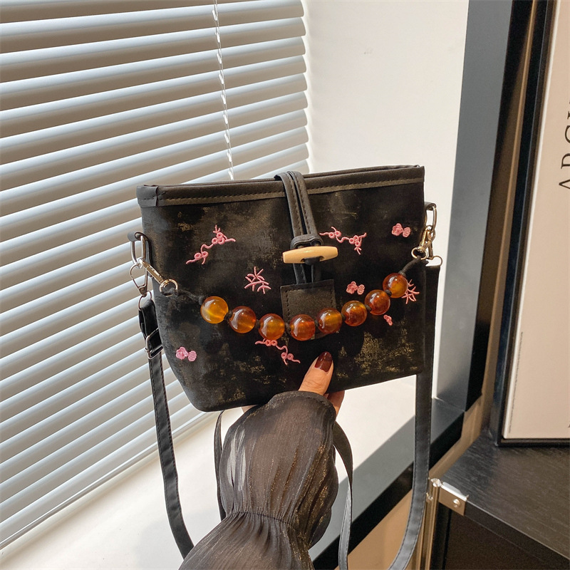 新中式包包女士新款潮高级质感小众腋下手提串珠包缎面斜挎包