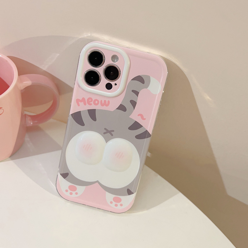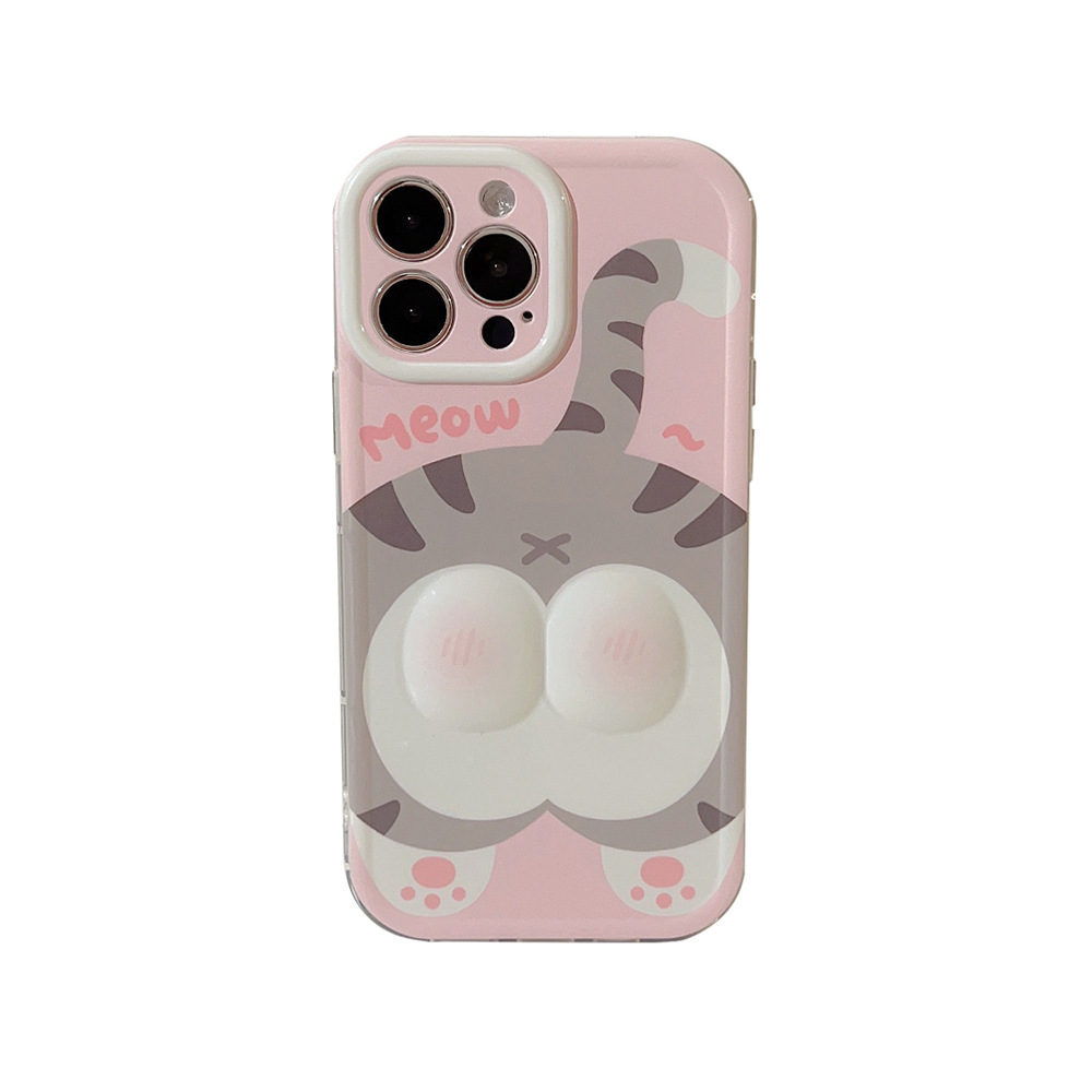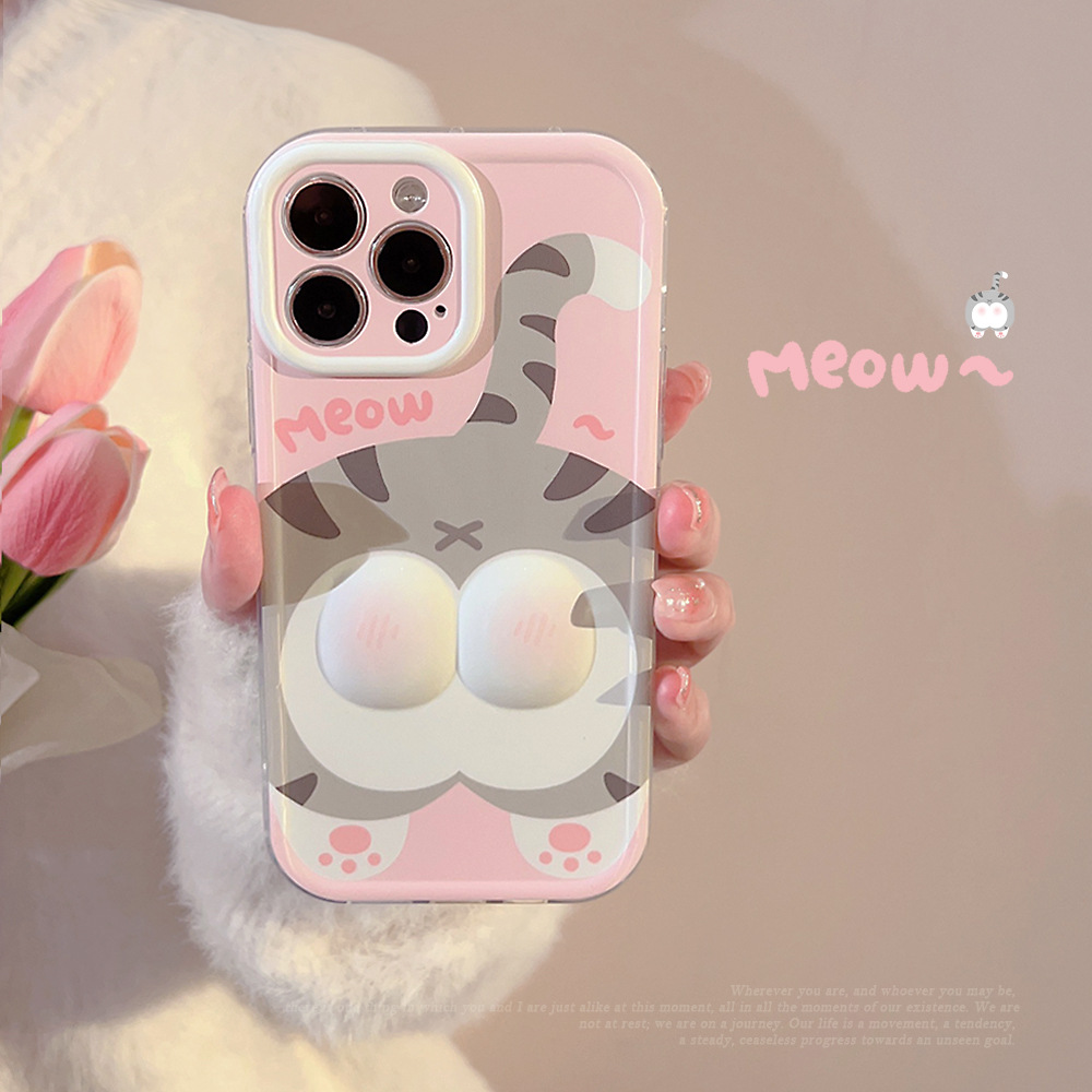 可爱猫咪屁屁iPhone14适用15苹果13promax手机壳11捏捏立体12全包