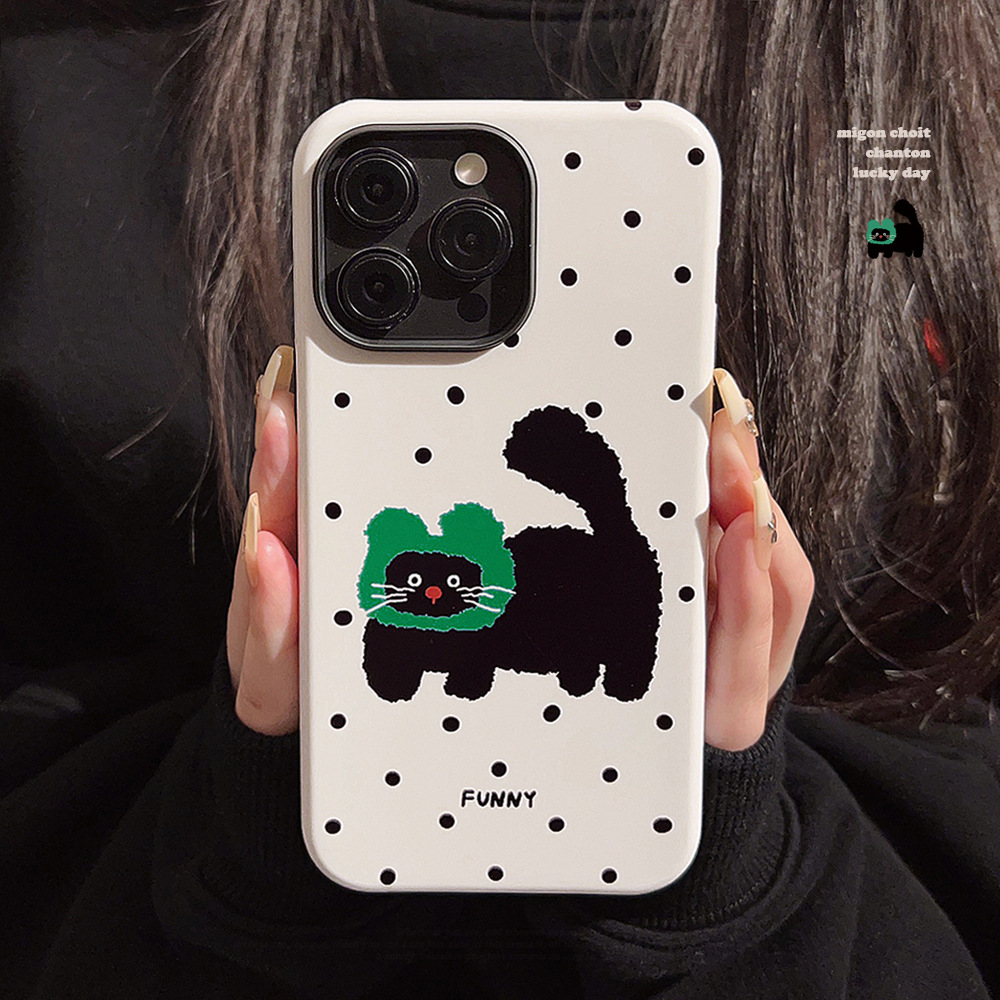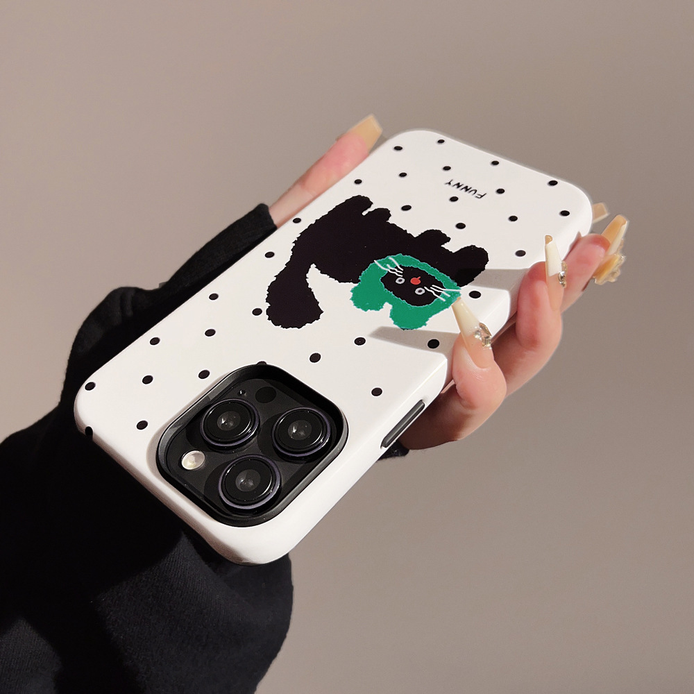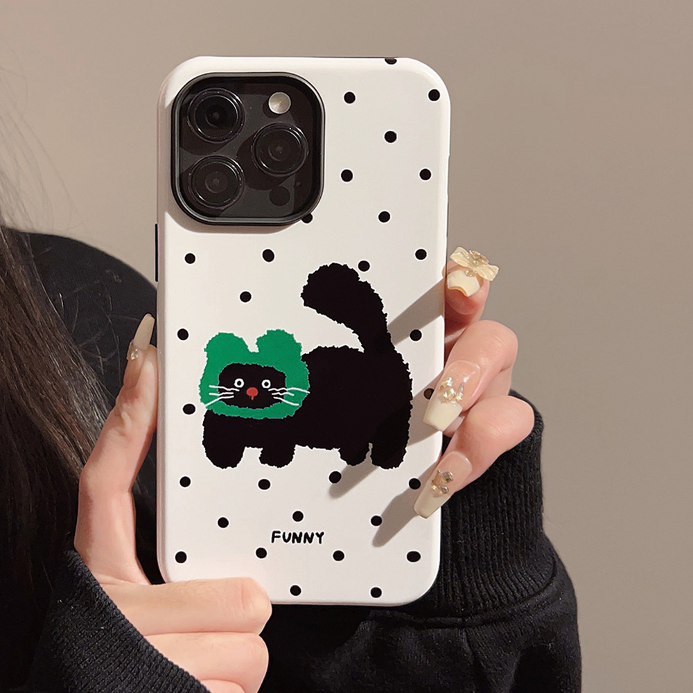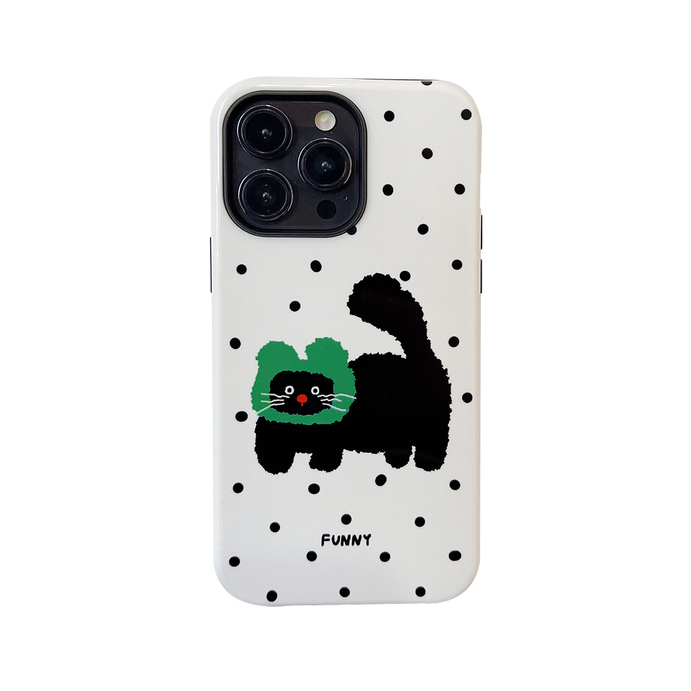 波点小猫咪iPhone15苹果手机壳14promax适用13韩风可爱12菲林11硬