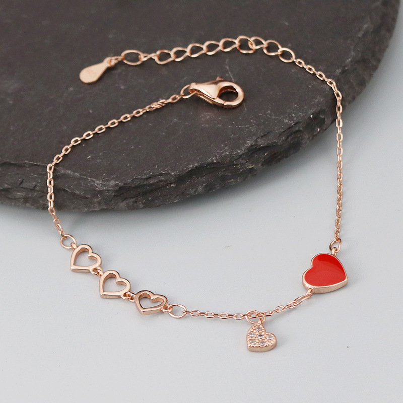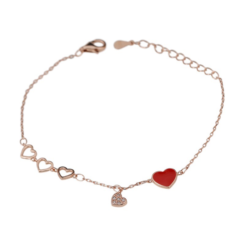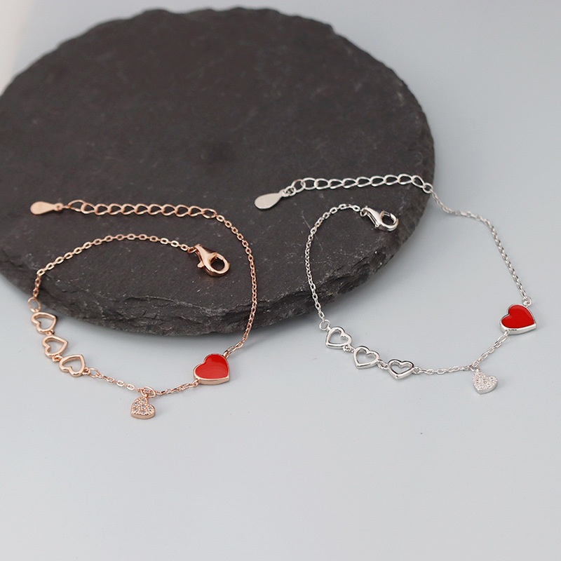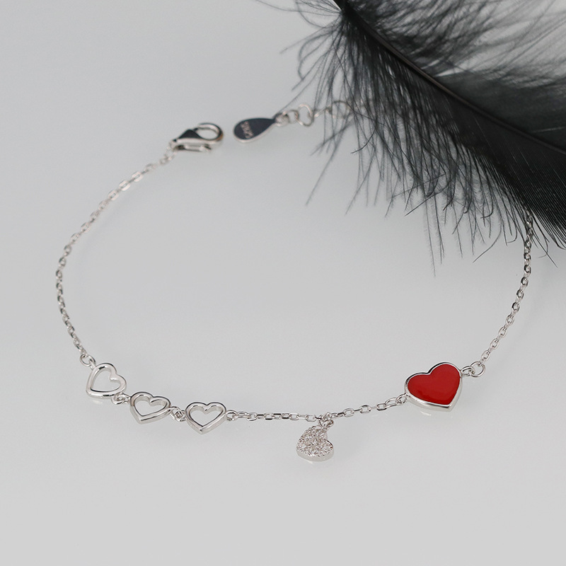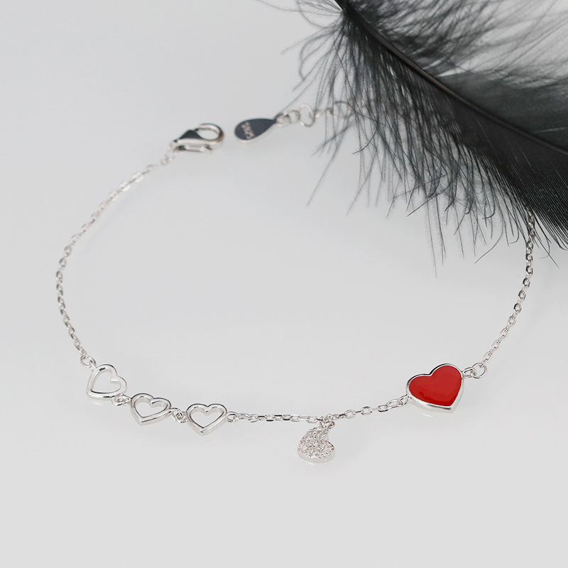 s925纯银爱心手链女百搭ins小众设计感韩版轻奢桃心少女感饰品