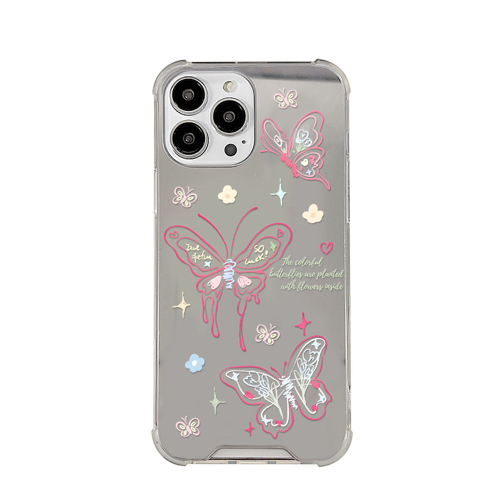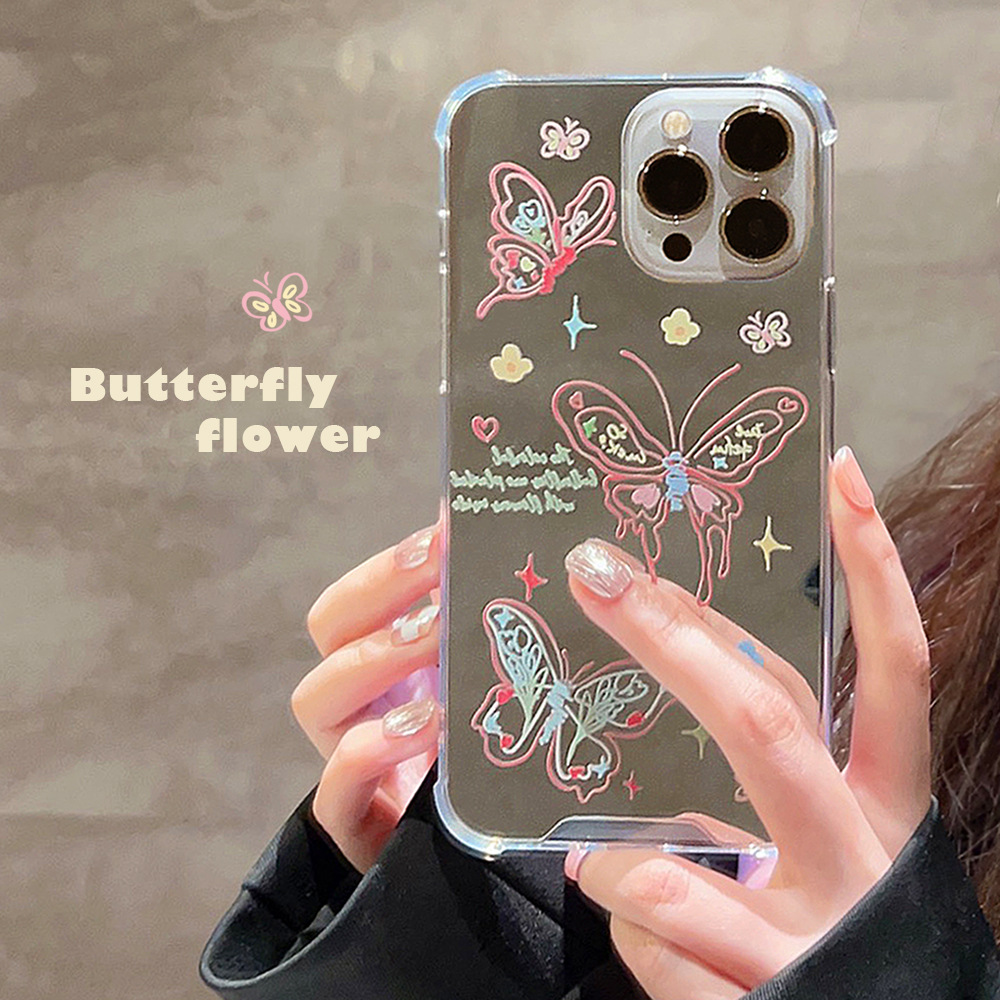 春天花花蝴蝶镜面适用15苹果13手机壳iphone14promax补妆12原创11