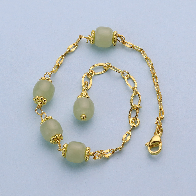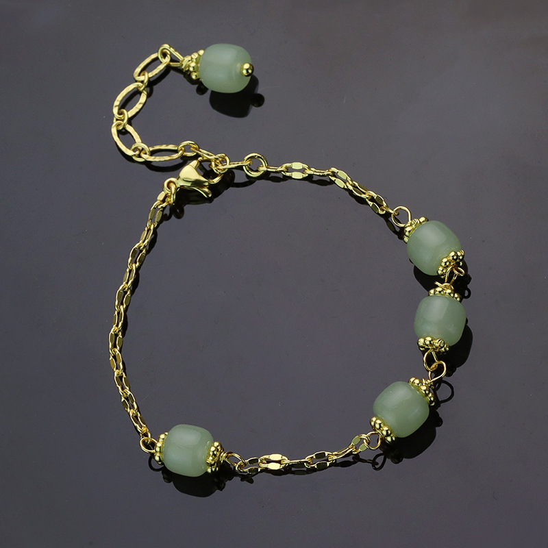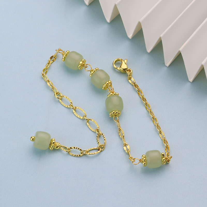 s925纯银转运珠和田玉手链女 复古时尚感编织手环送女友礼物