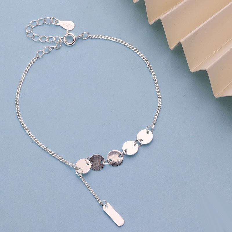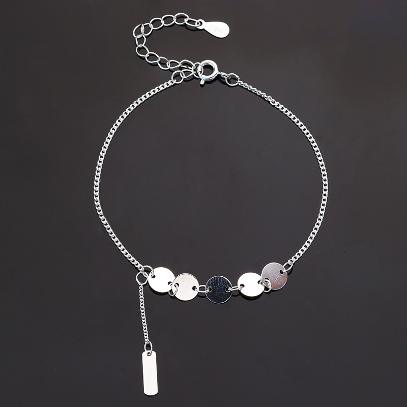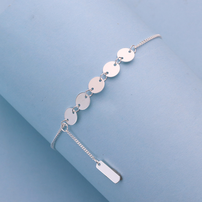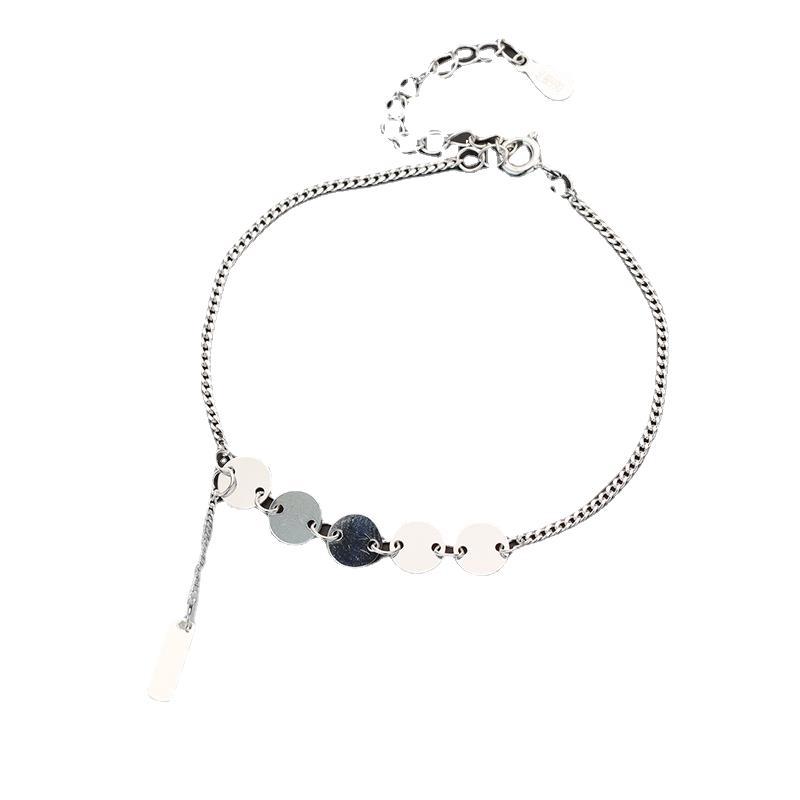 足银990圆片手链女 韩版时尚轻奢感方牌手链简约ins亮片手饰