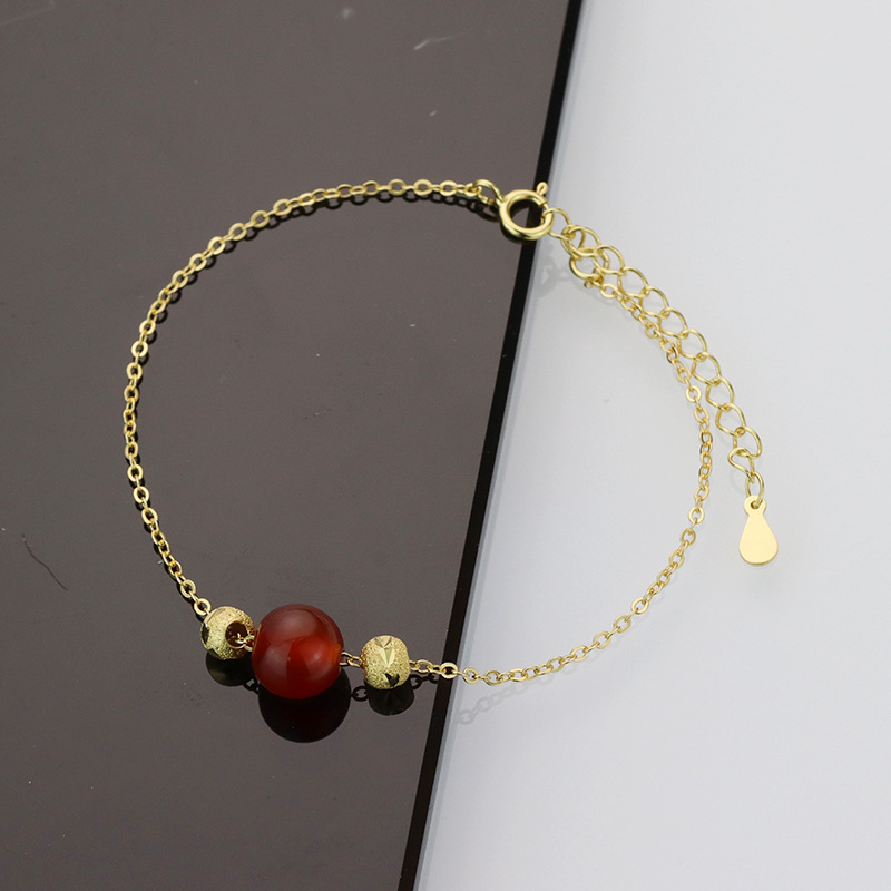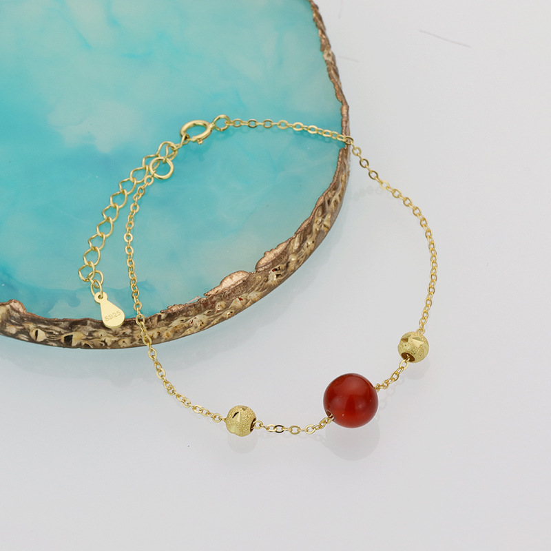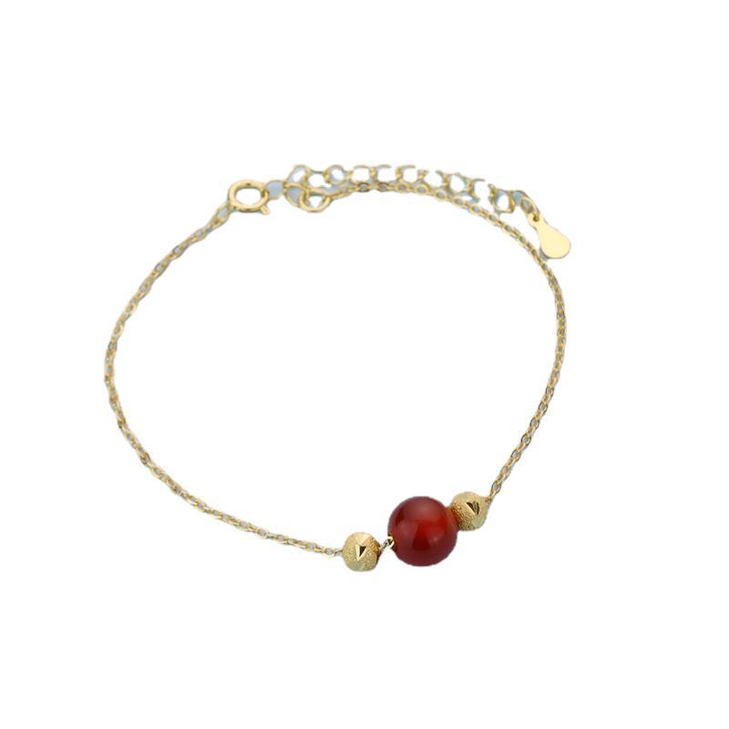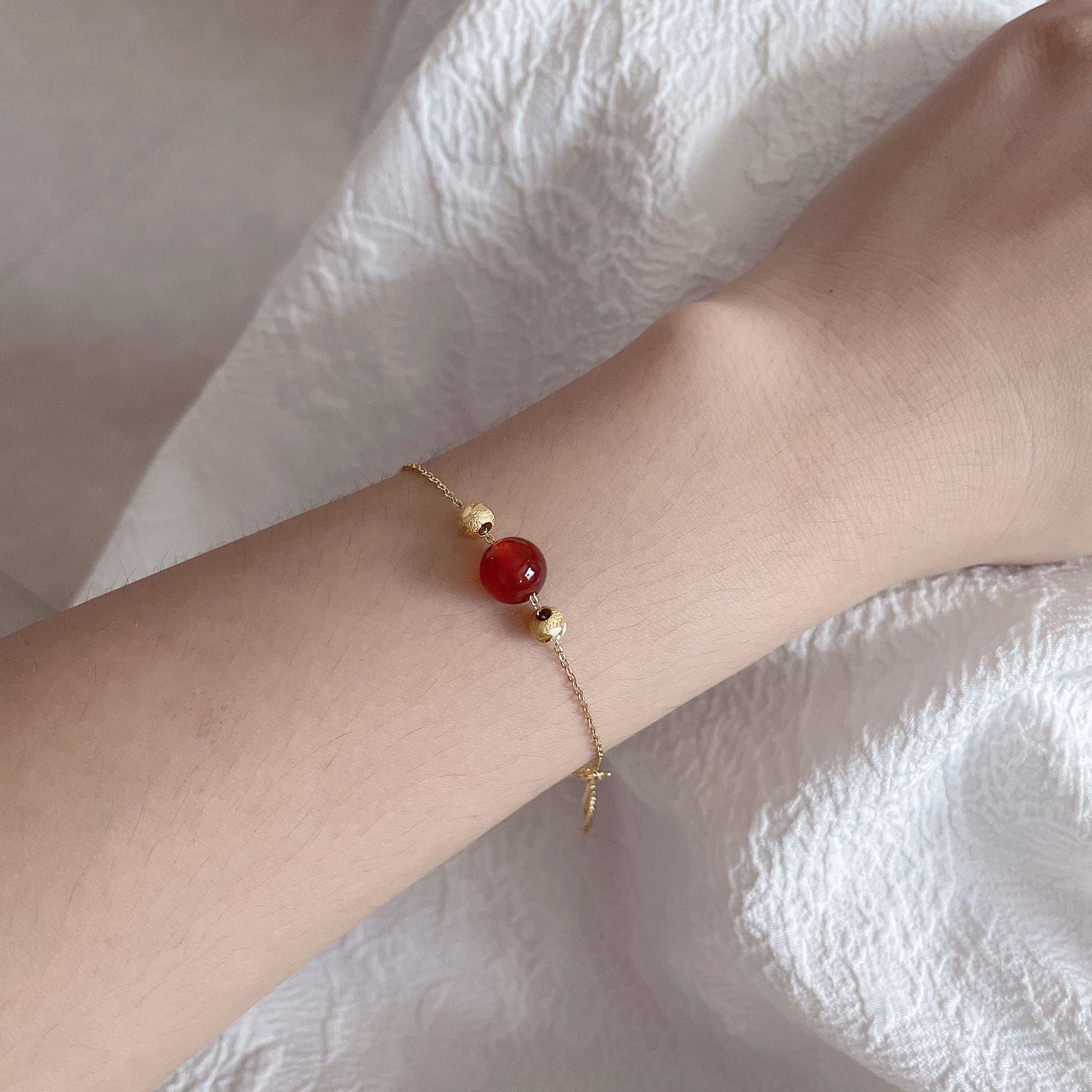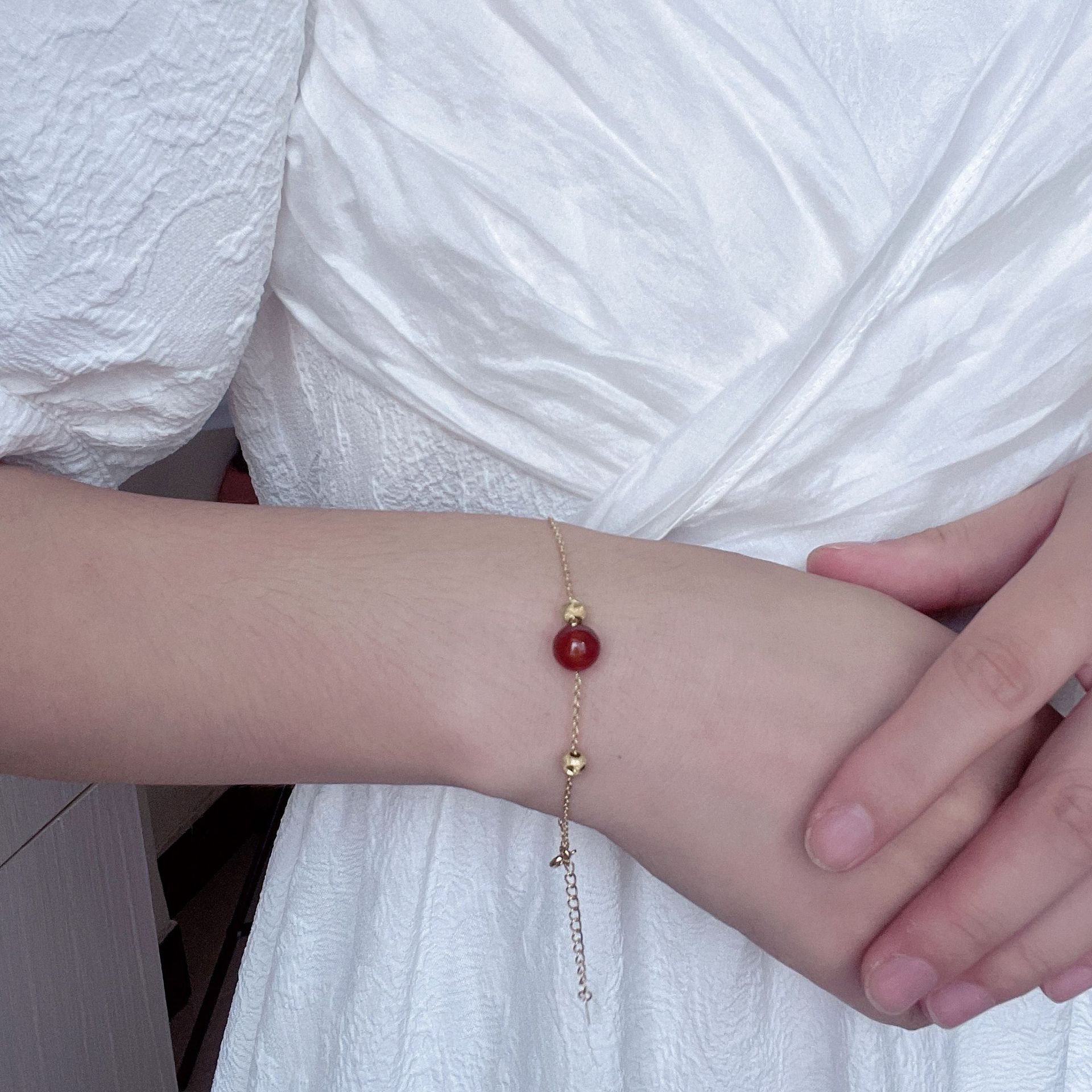 S925纯银红玛瑙手链女 百搭轻奢小众设计感五福珠手饰