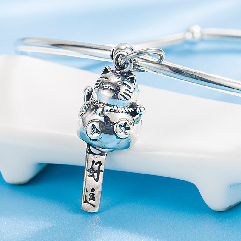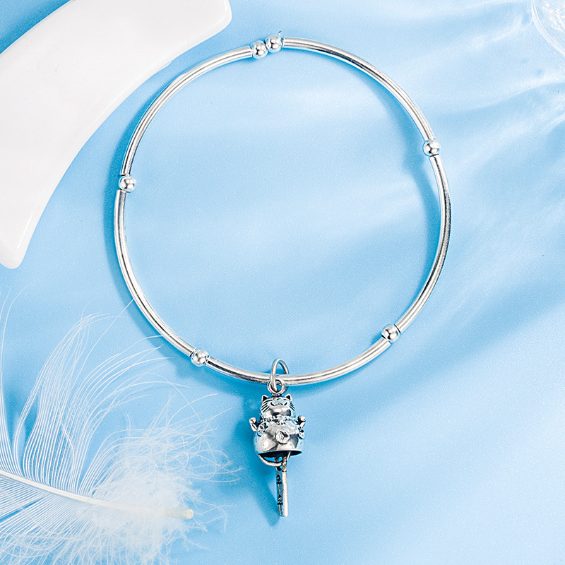 S925纯银可爱猫手链女 闺蜜年年好运复古泰银时尚手镯243DZ