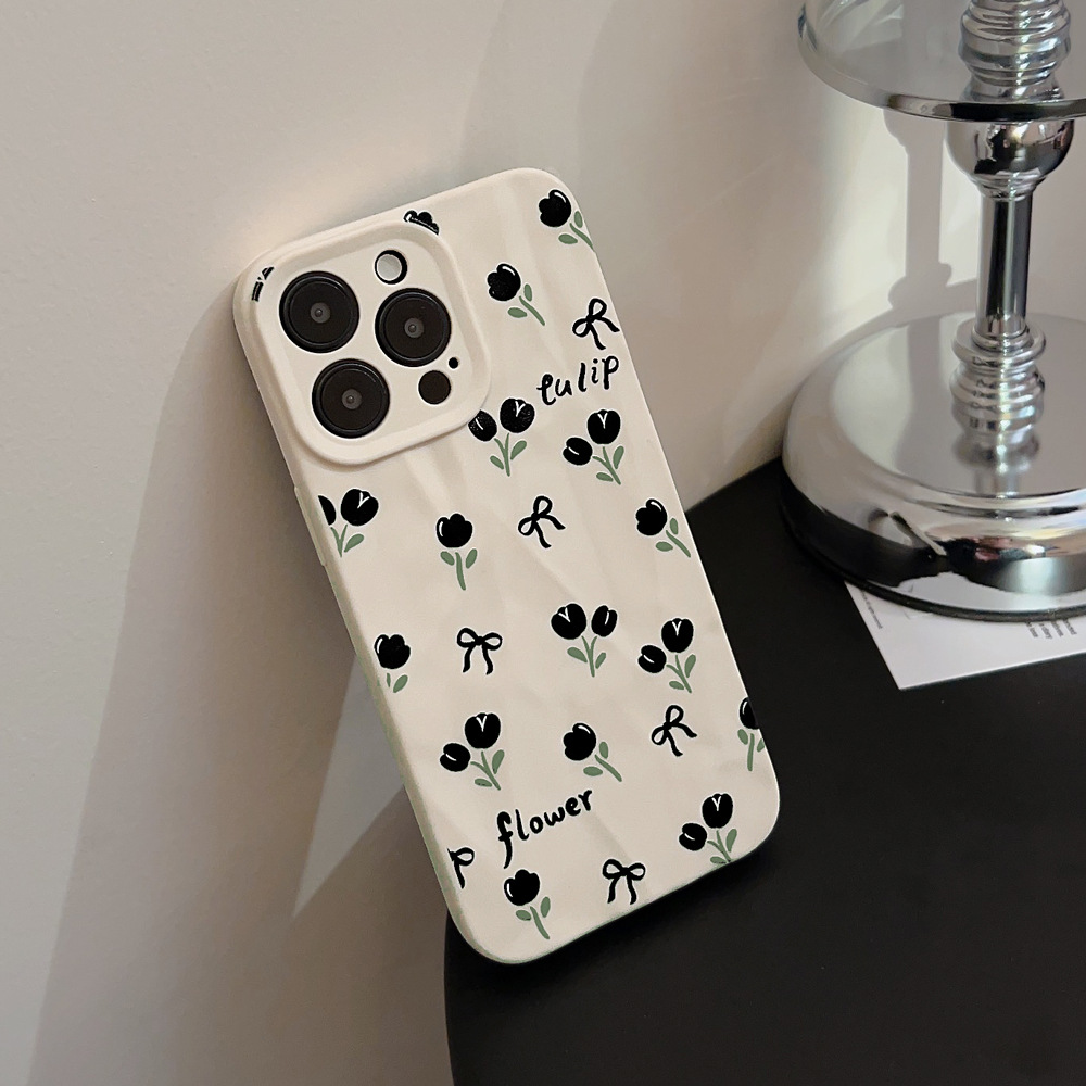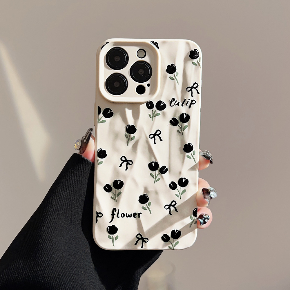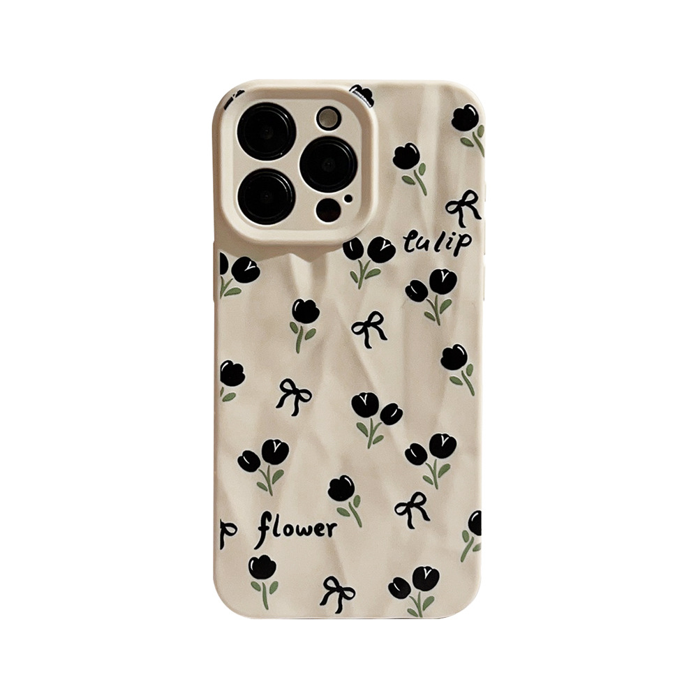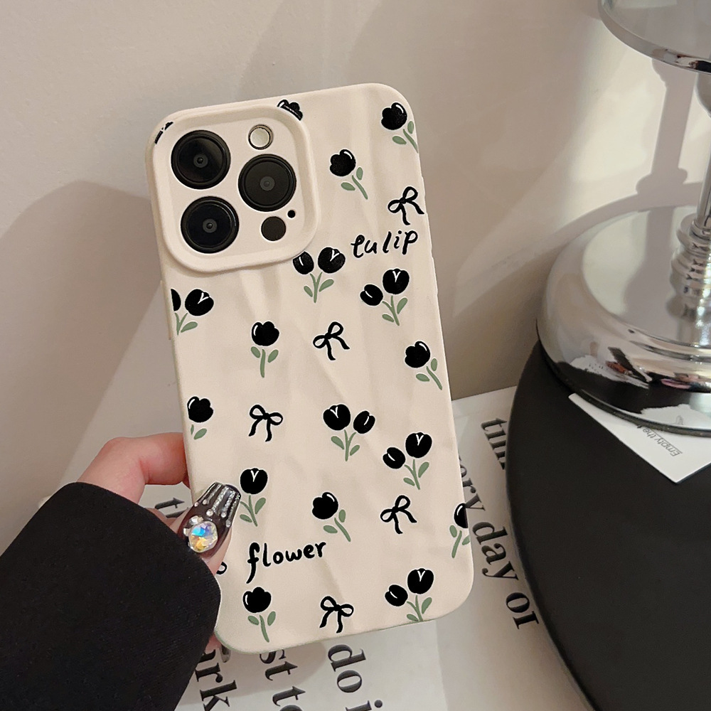 冷淡风郁金香适用苹果15ProMax手机壳13褶皱iPhone12全包14文艺11