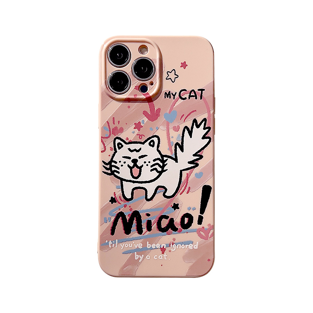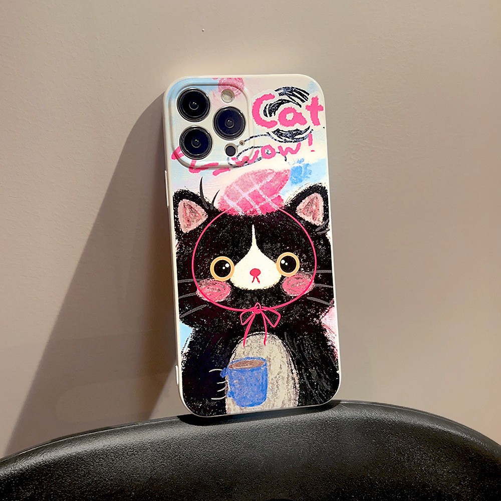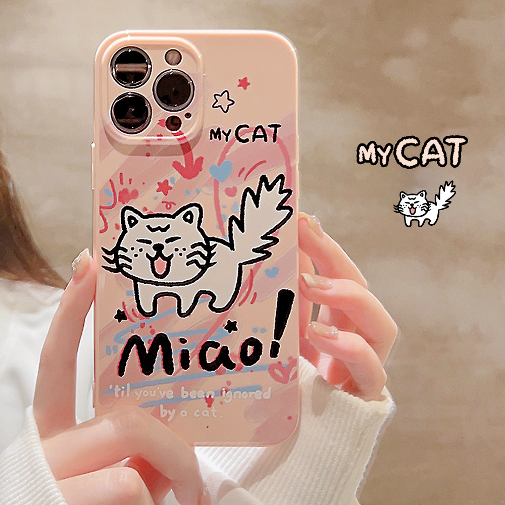 涂鸦线条猫咪适用iphone15promax手机壳13个性甜酷11全包12代发14