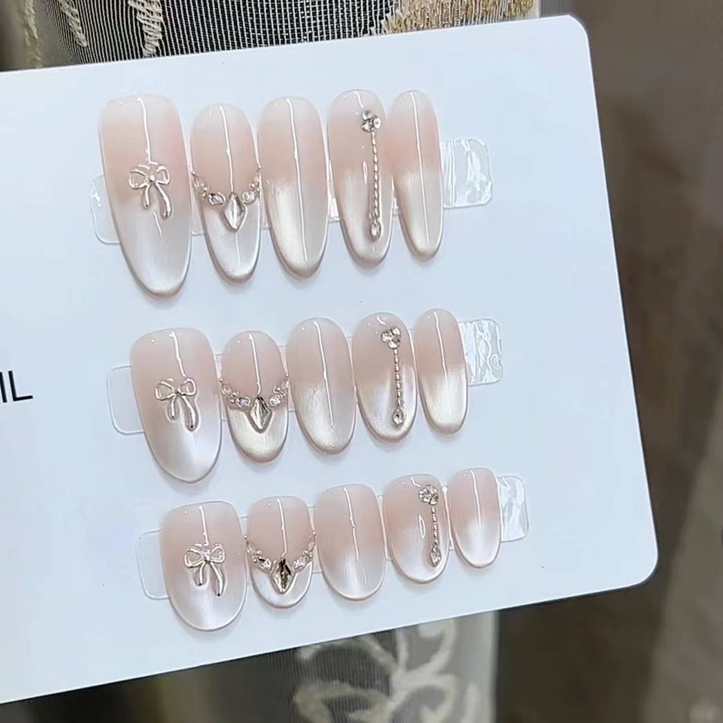 一只顾美甲【Y】 简约腮红晕染斜边链条浮雕蝴蝶奶香假期贴片穿
