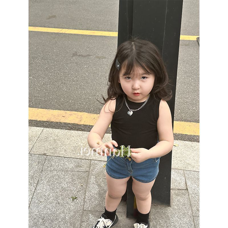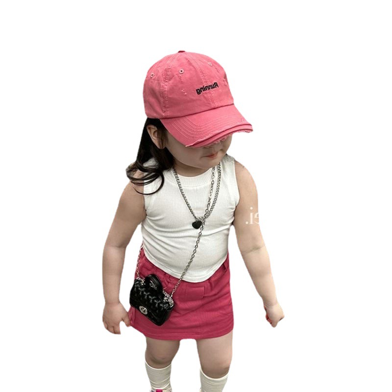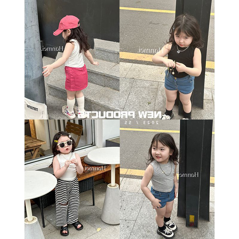 女童夏装两件套宝宝洋气儿童个性潮牌韩版网红纯色背心条纹阔腿裤