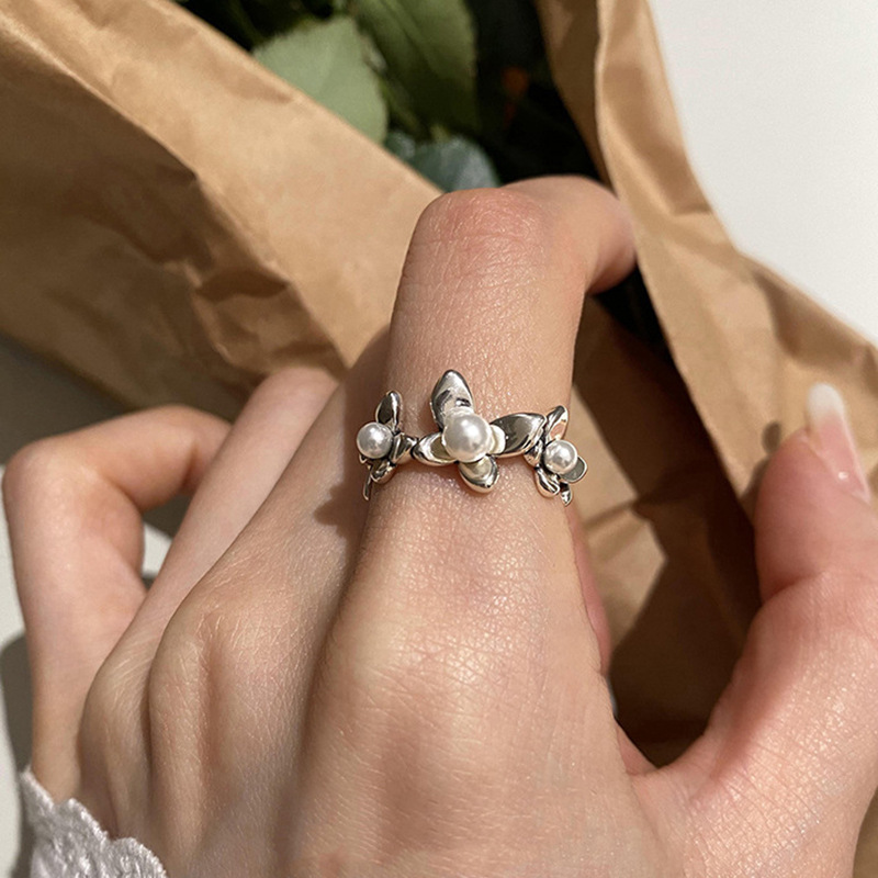 轻奢蝴蝶珍珠戒指女设计小众高级感食指戒开口ins冷淡风简约