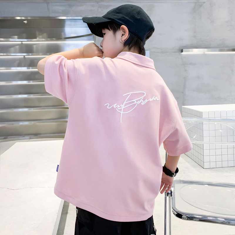 男童夏装纯色英伦POLO短袖t恤新款大儿童夏季上衣帅气宽松潮T