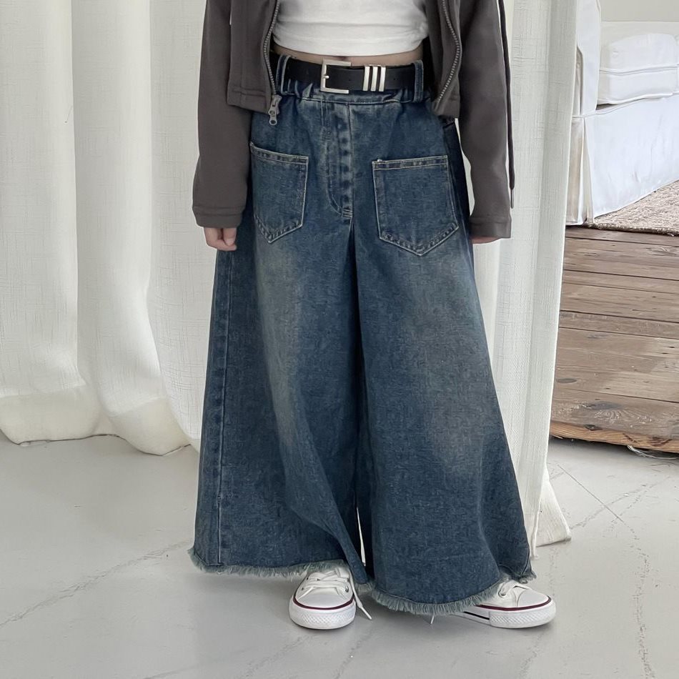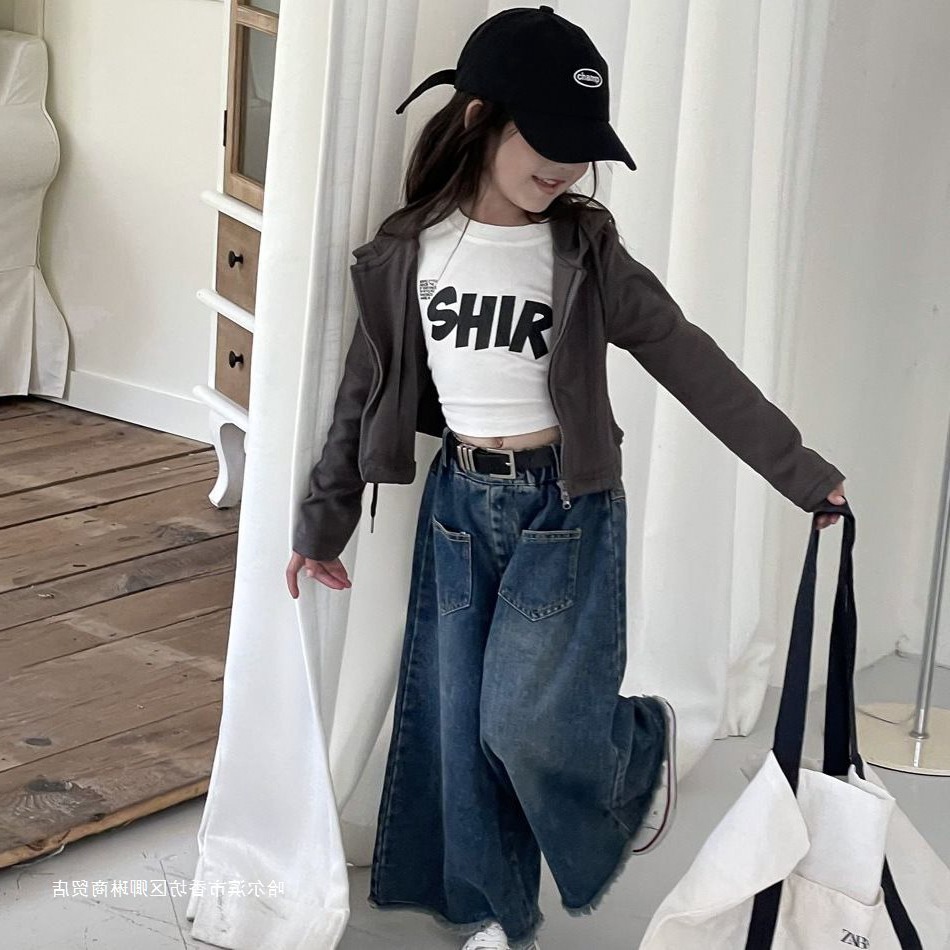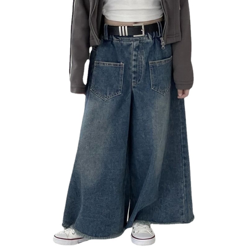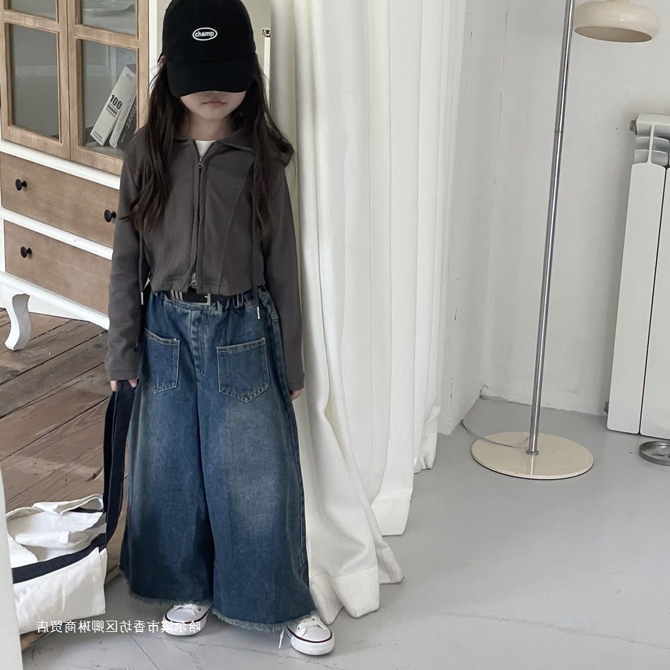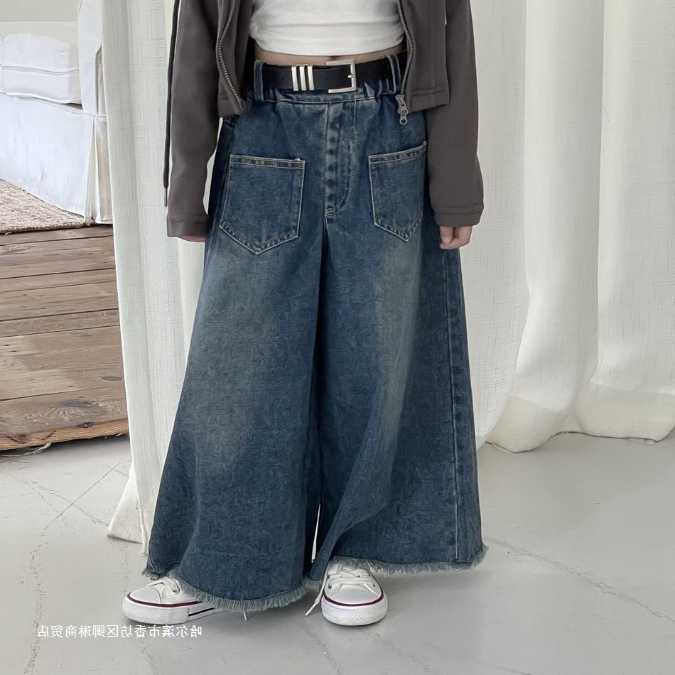 春秋女童装牛仔裤宝宝洋气儿童个性潮网红韩版宽松毛边高腰阔腿裤