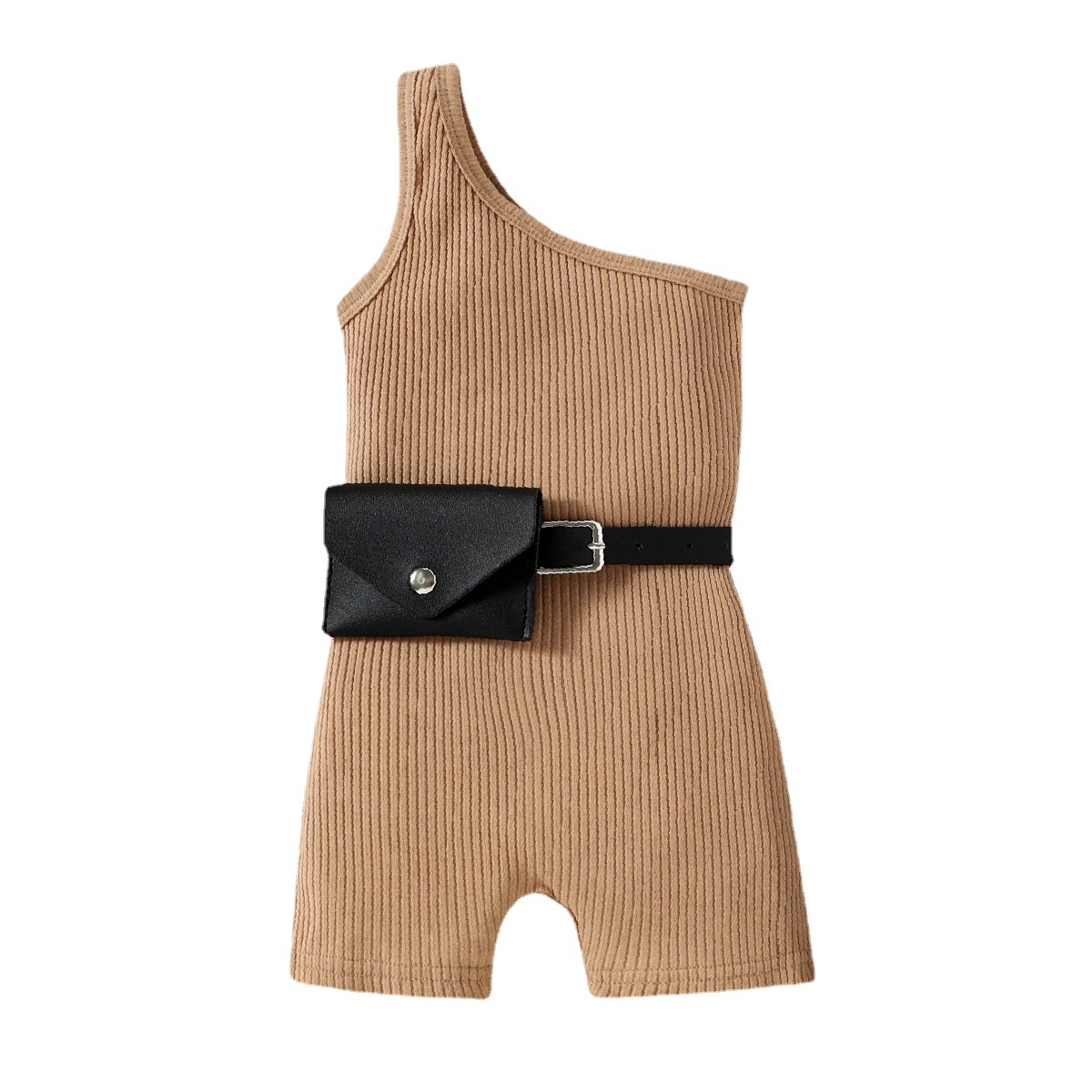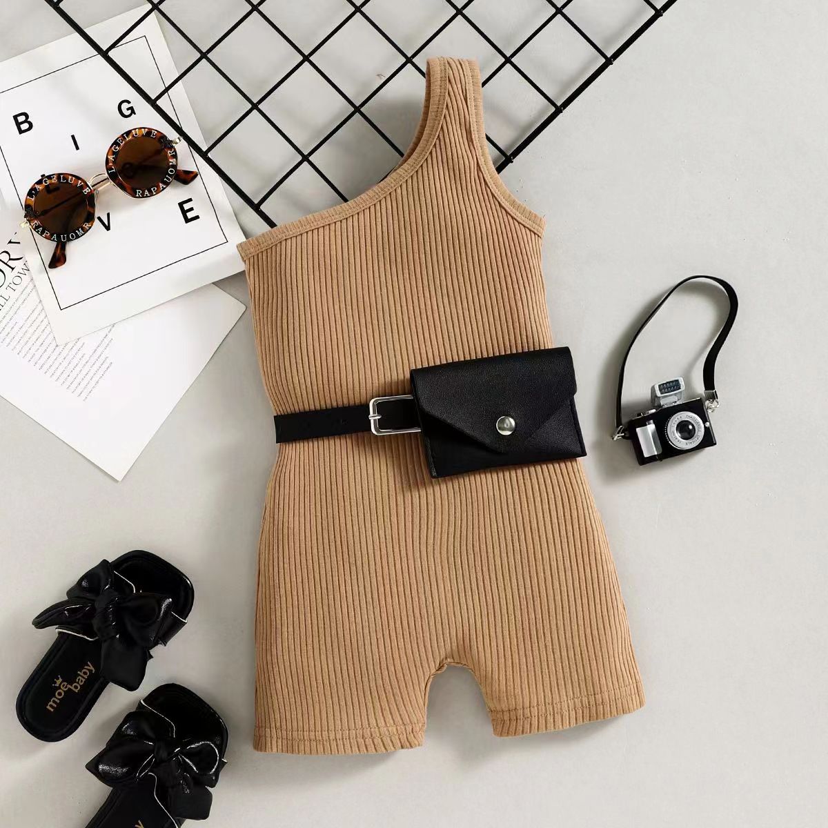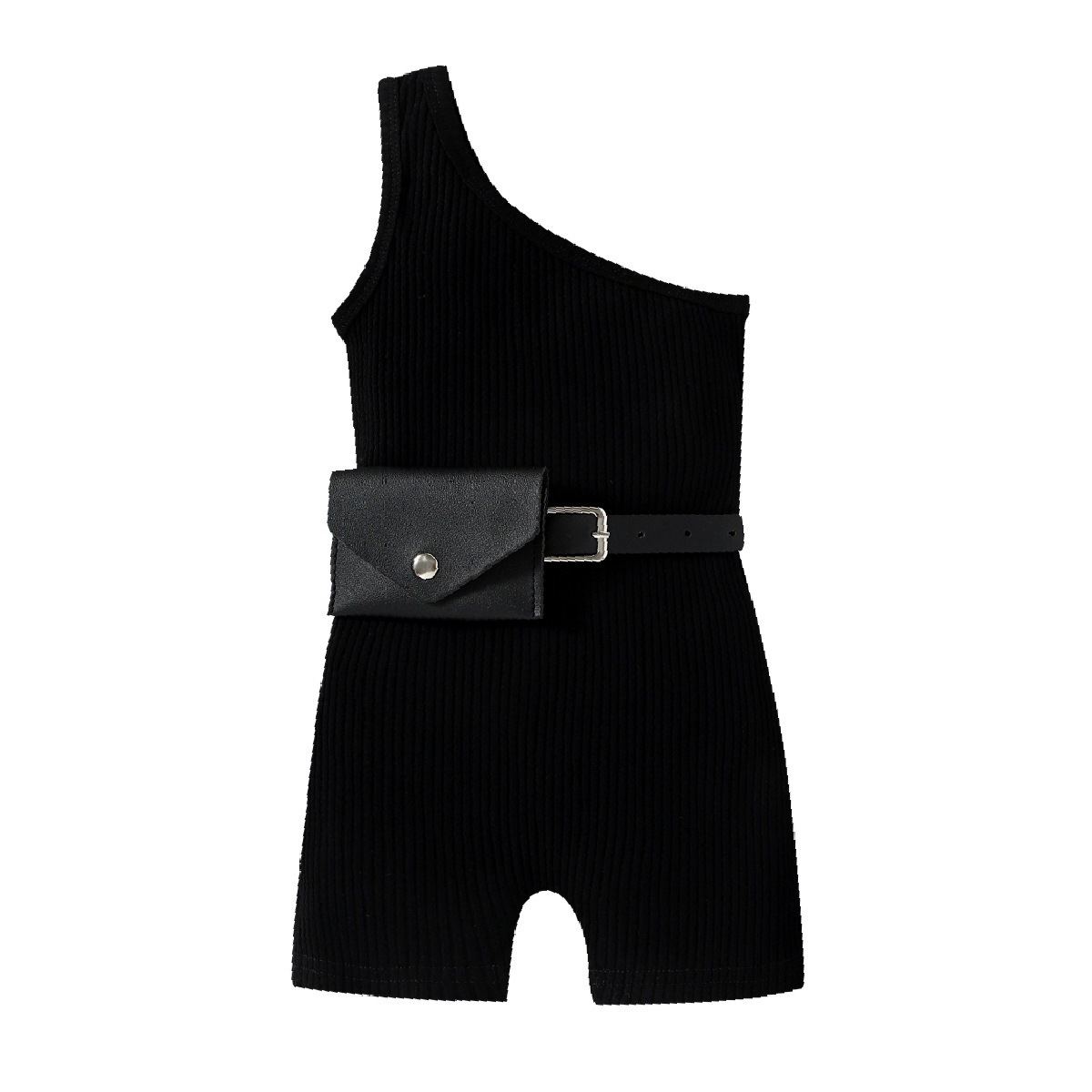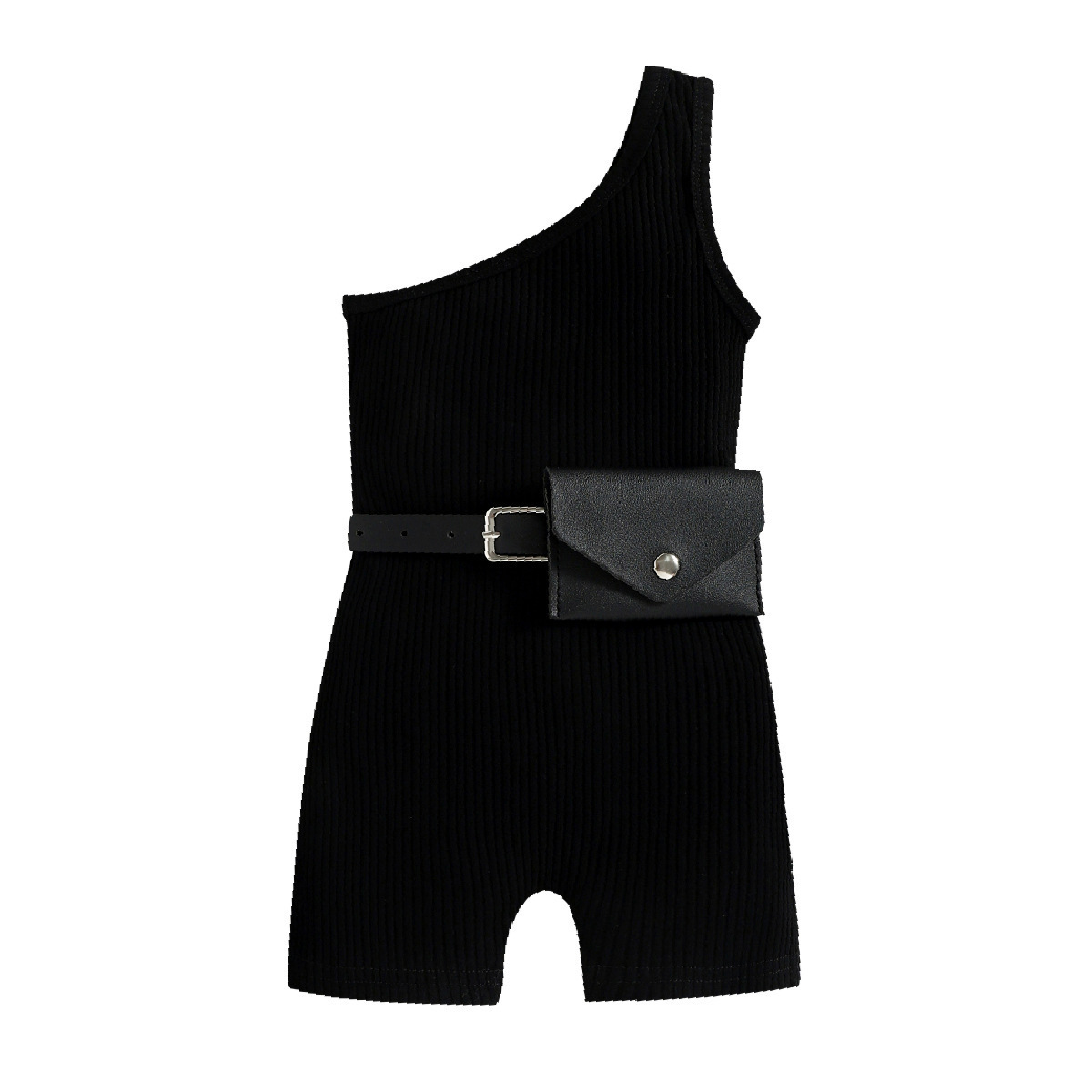 女童夏装连体衣宝宝洋气儿童个性潮韩版不规则露肩腰包网红连身衣