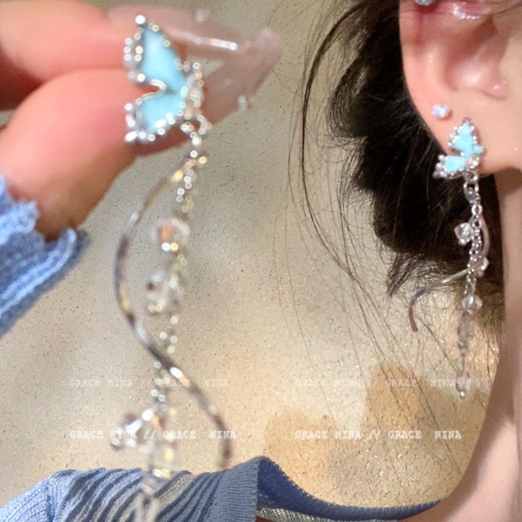 美出圈!气质蝴蝶流苏耳钉女小众独特耳环新款爆款高级感耳饰