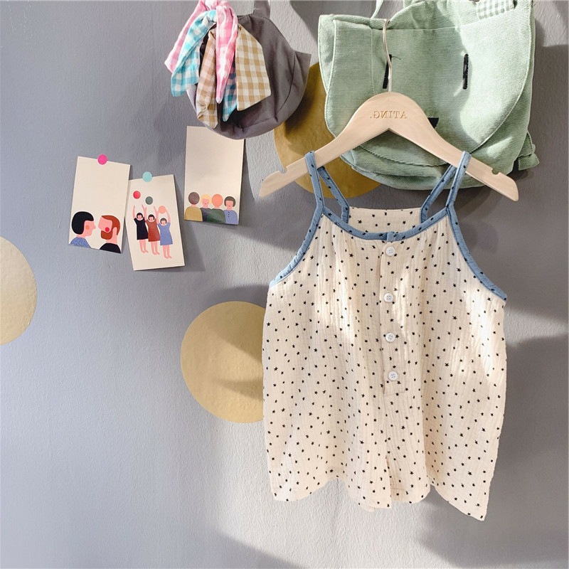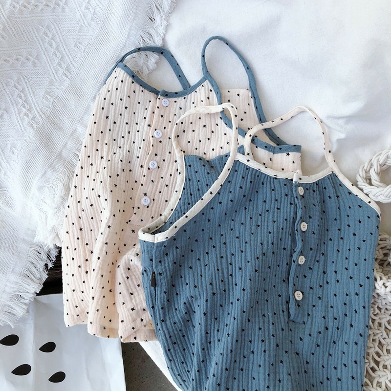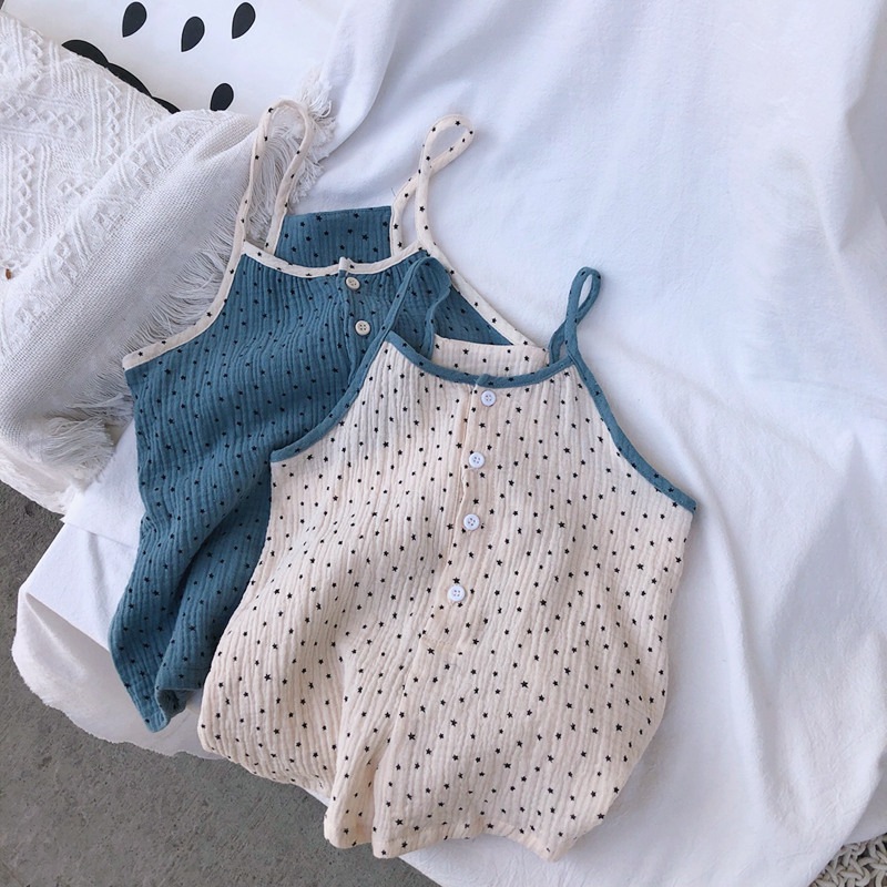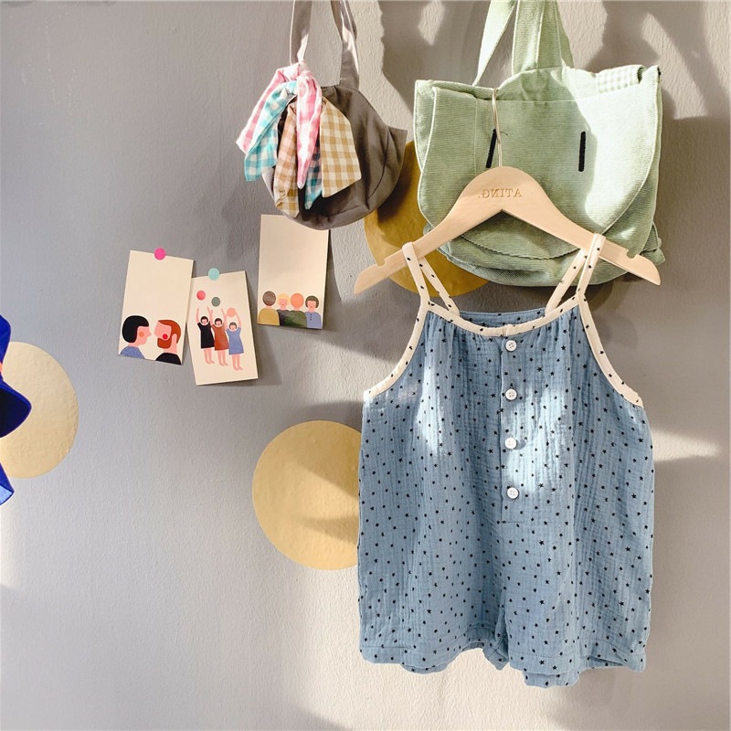 夏季女童连体衣宝宝网红洋气儿童个性潮牌韩版棉麻波点背带裤短裤