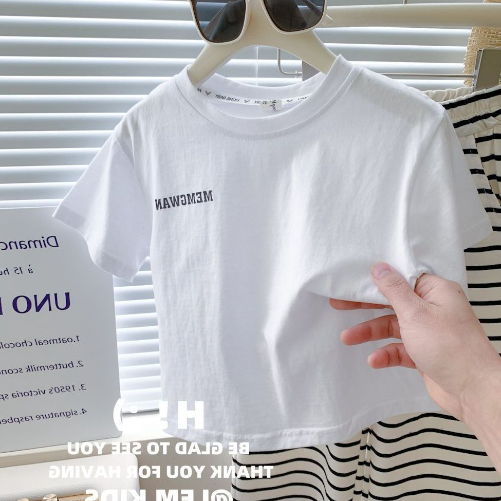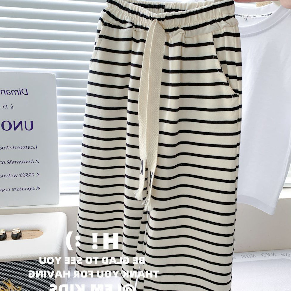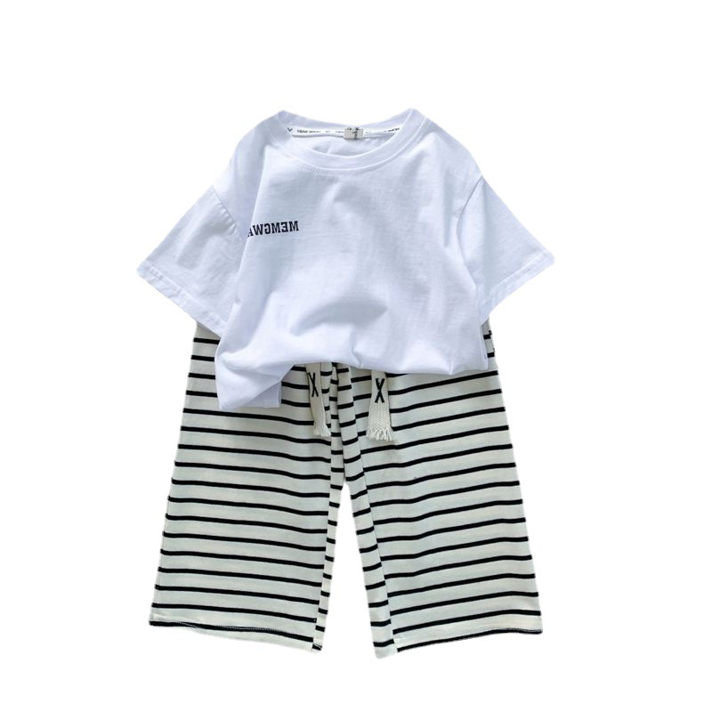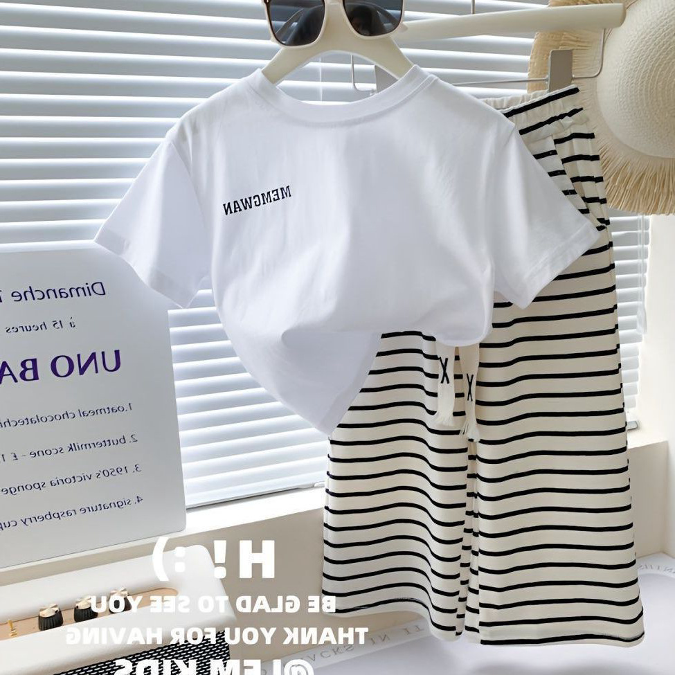 夏季女童套装宝宝洋气儿童个性潮网红韩版白色字母T恤条纹阔腿裤