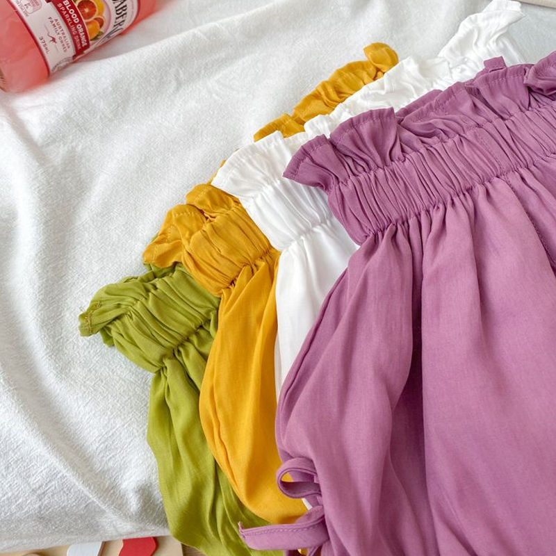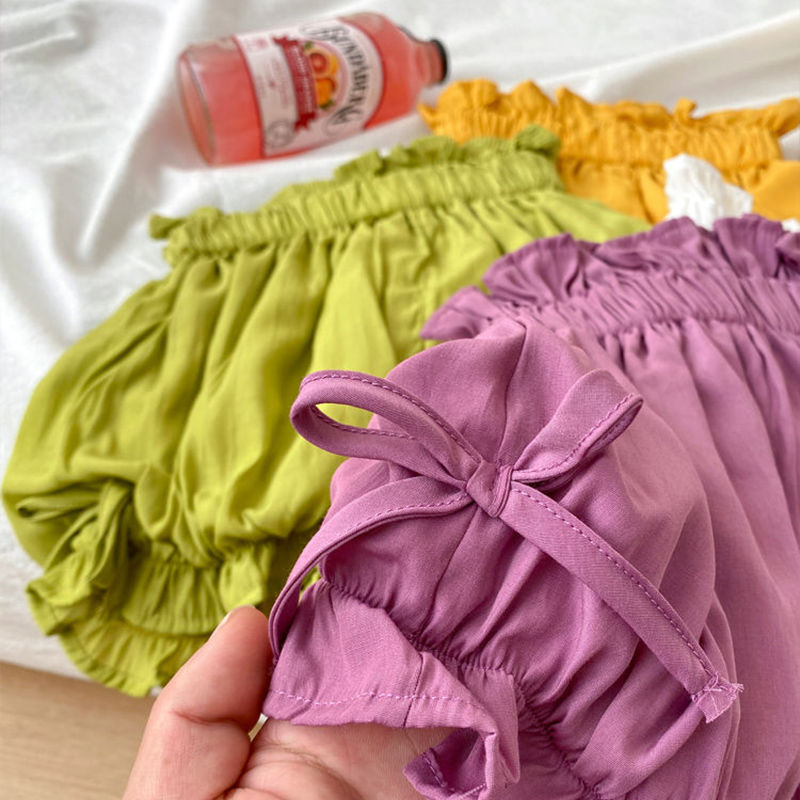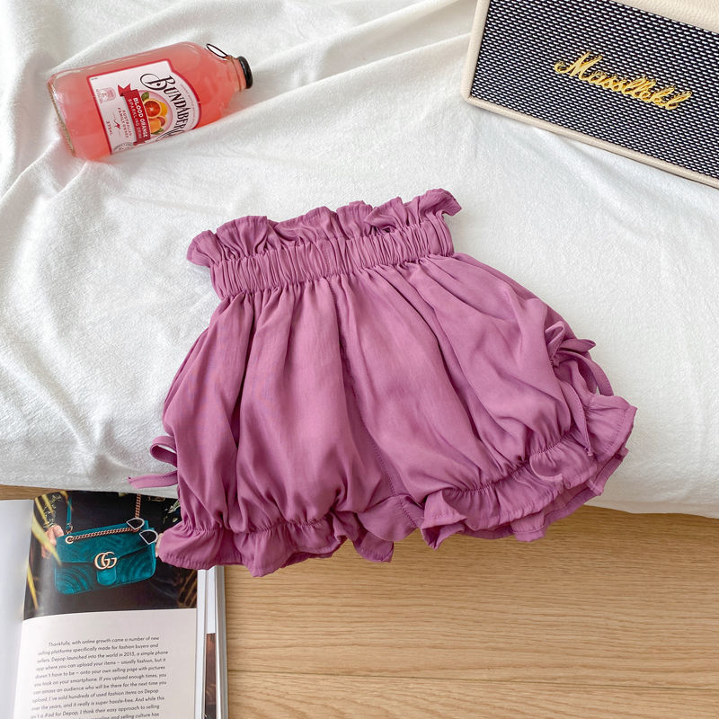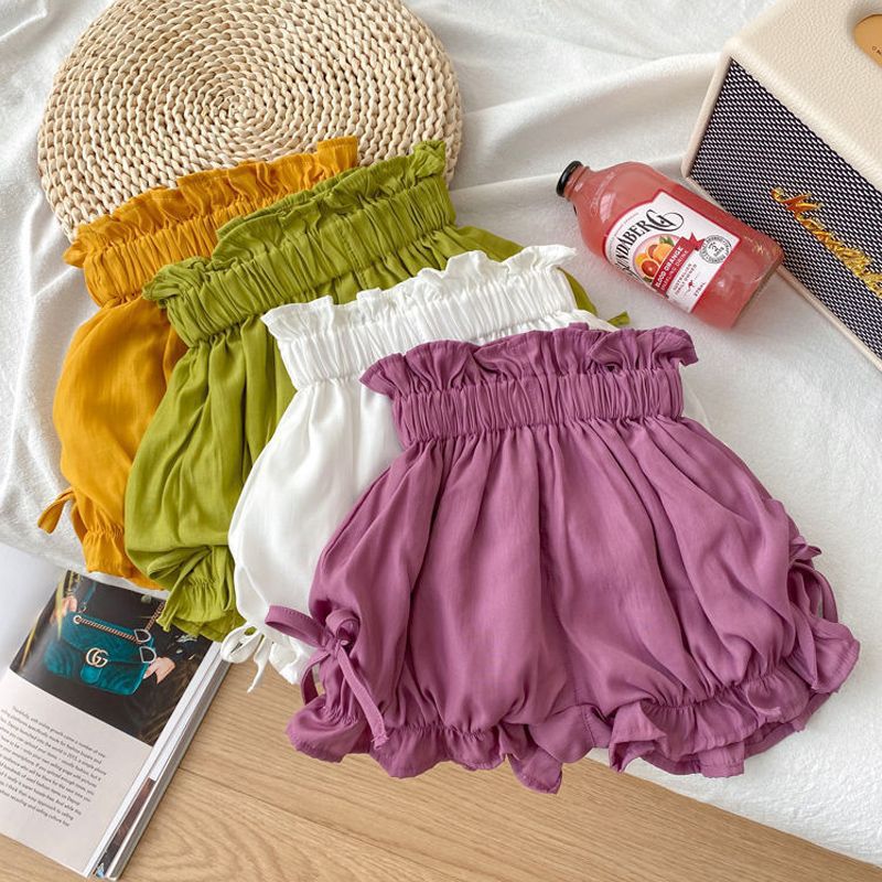 夏季女童短裤宝宝洋气儿童个性潮牌韩版木耳边高腰花苞裤时髦热裤