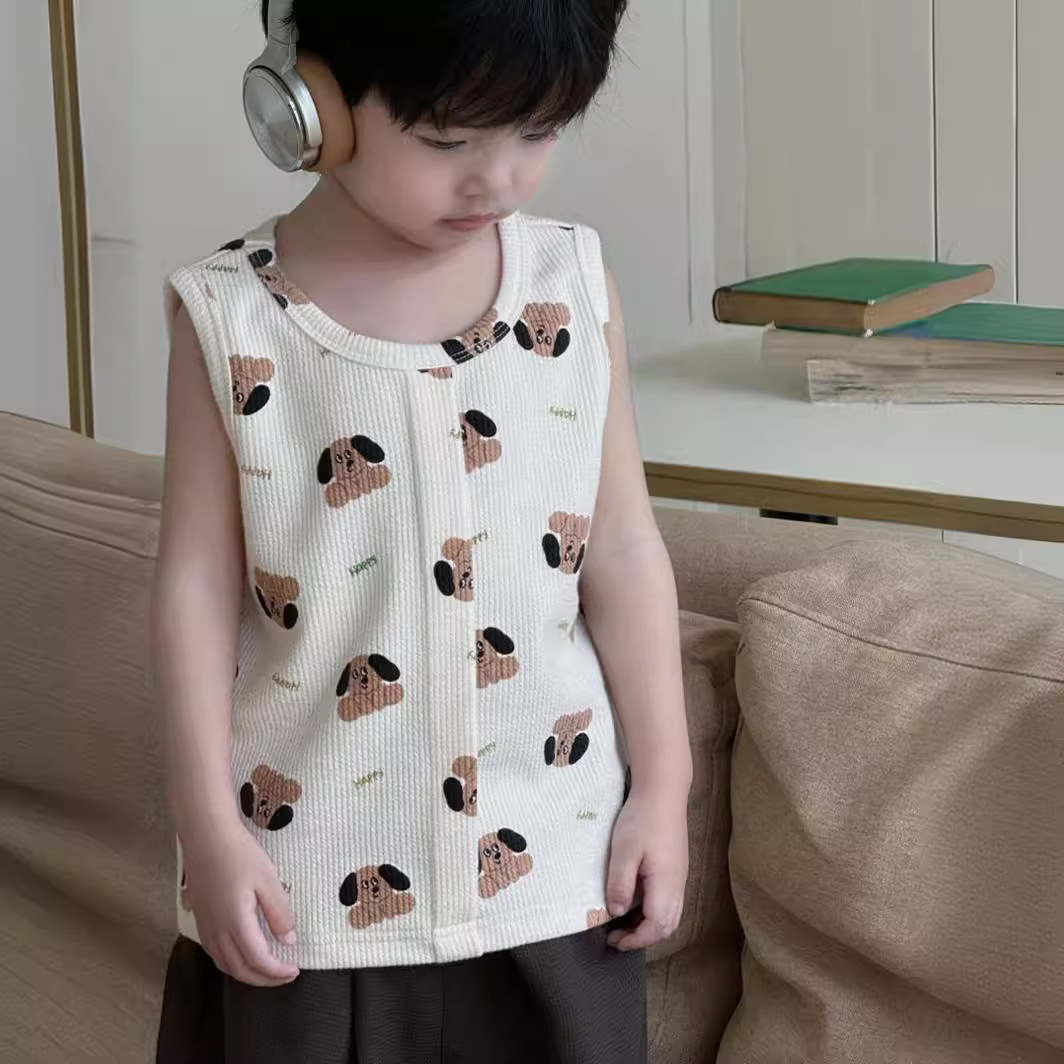 24夏款新品儿童无袖T恤男女童印花宝宝坎肩3-8岁特种针织提花背心