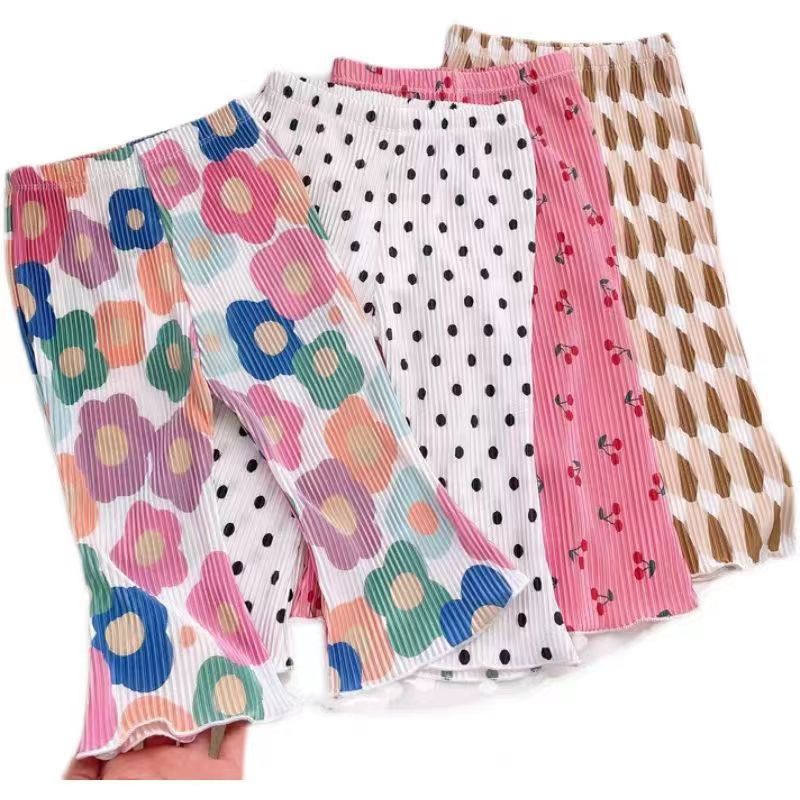 女童夏装休闲裤宝宝洋气儿童个性潮牌韩版波点花朵冰丝防蚊喇叭裤