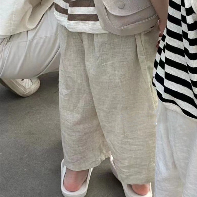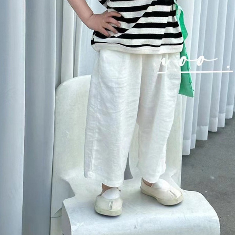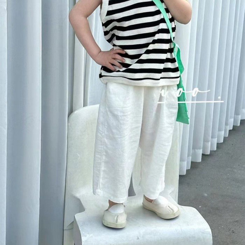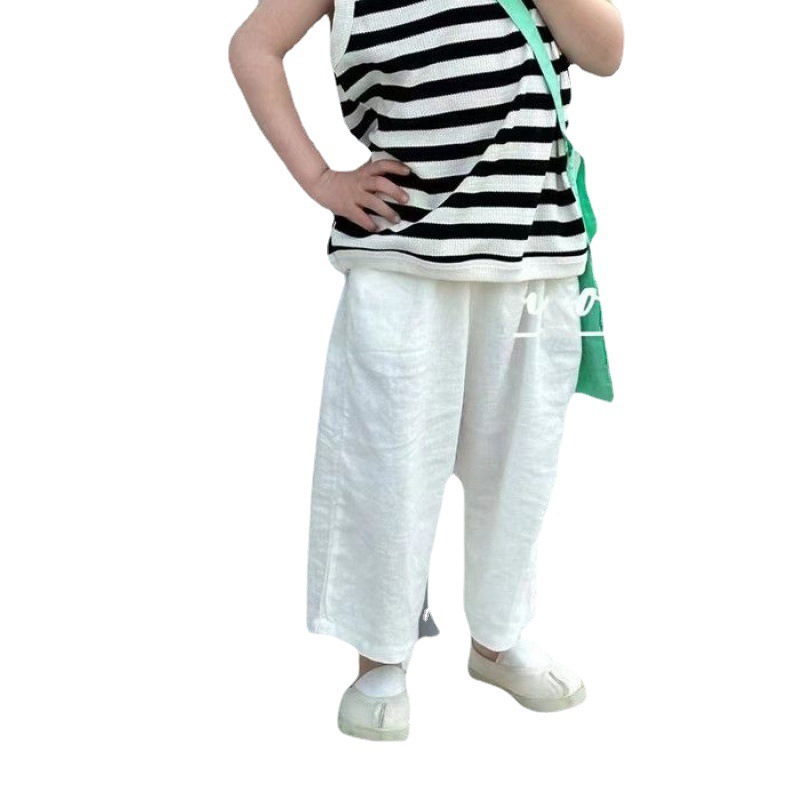 夏季女童休闲裤宝宝洋气儿童个性潮韩版棉麻九分纯色时髦阔腿裤