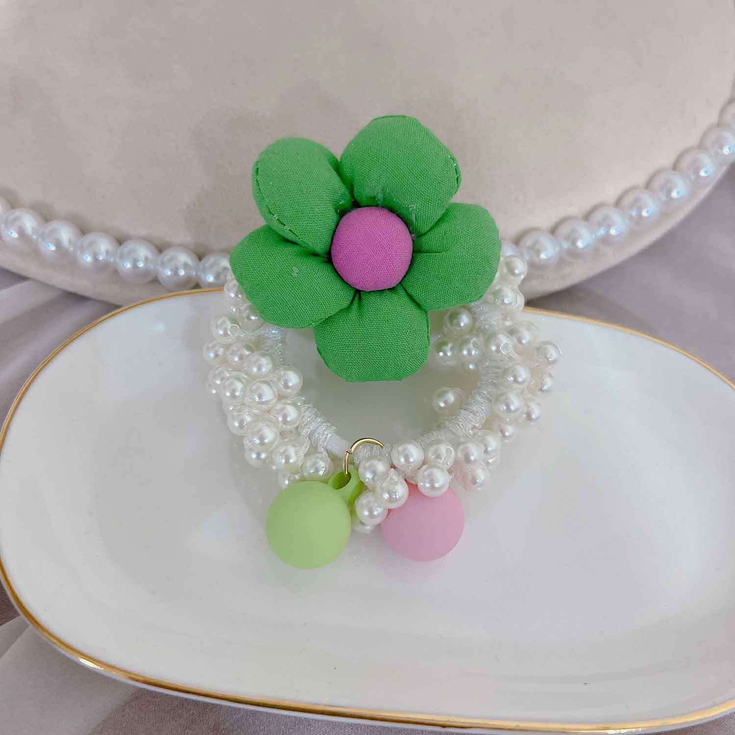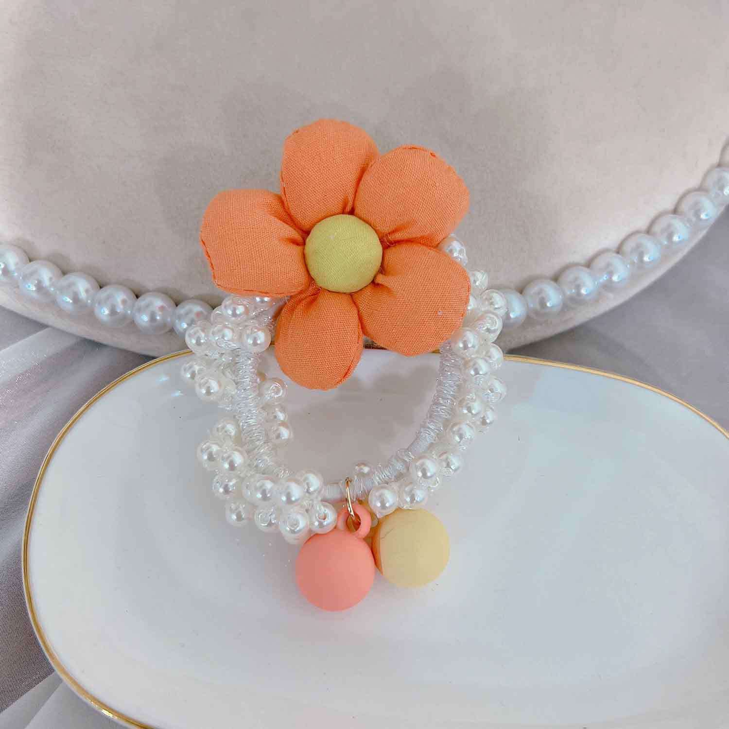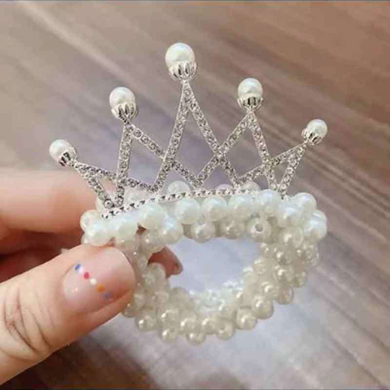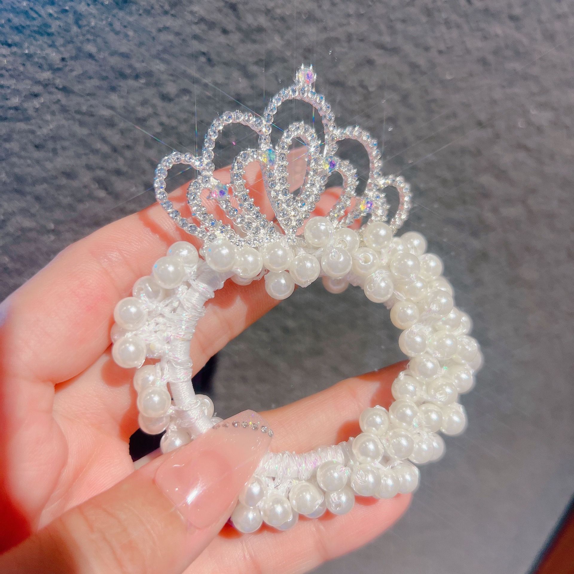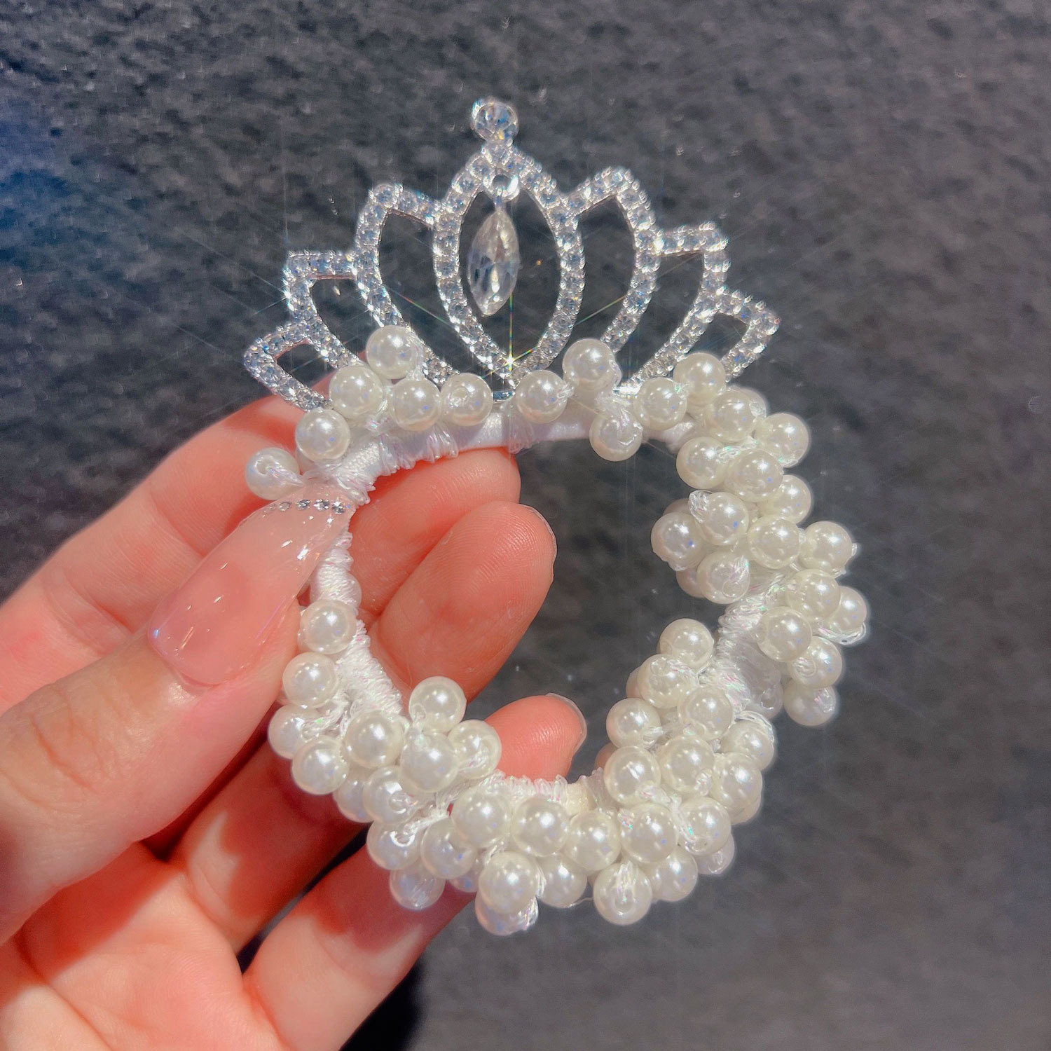 儿童皇冠头饰公主头绳韩国新款珍珠花朵小女孩扎头发丸子头橡皮筋