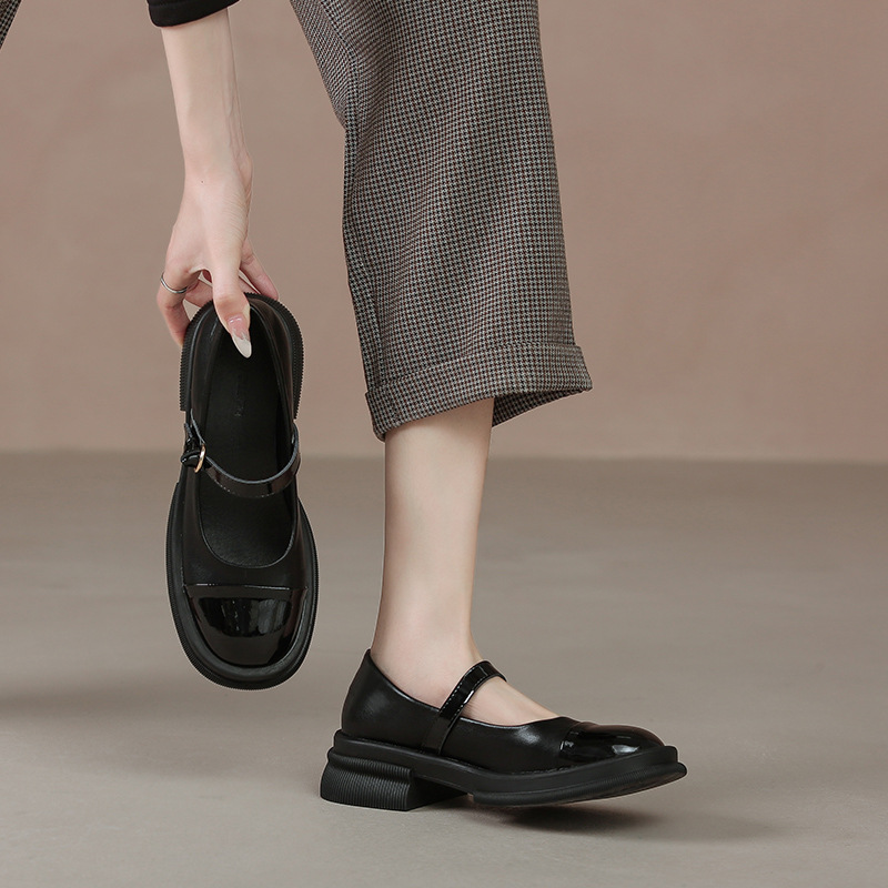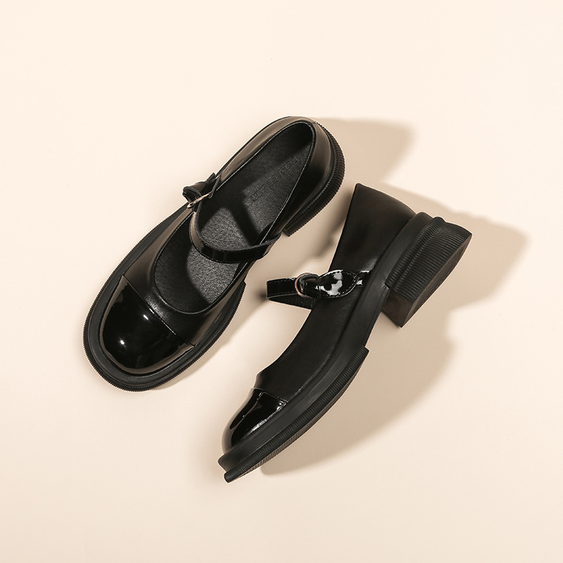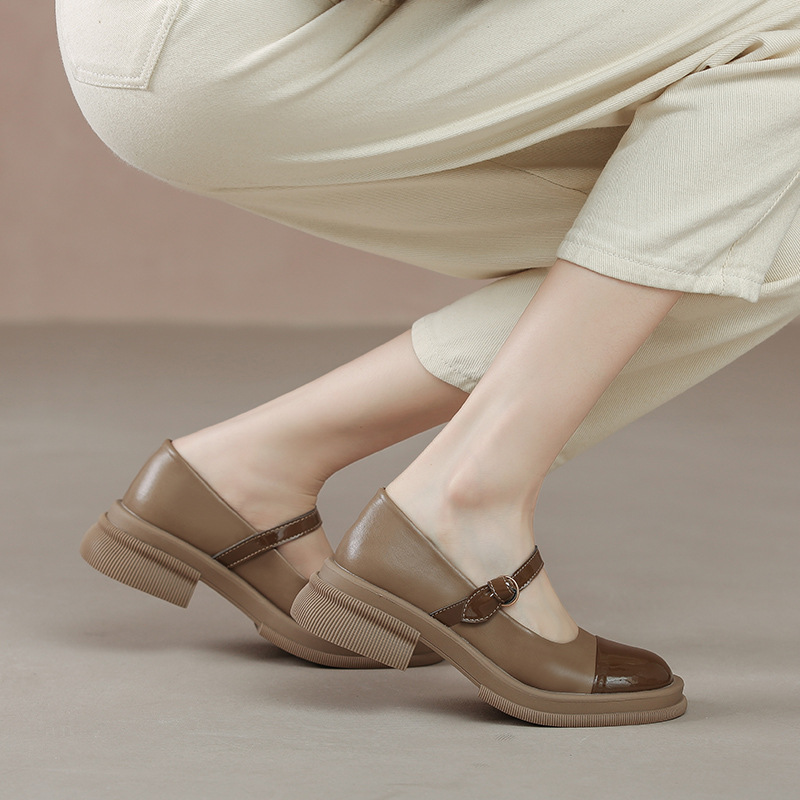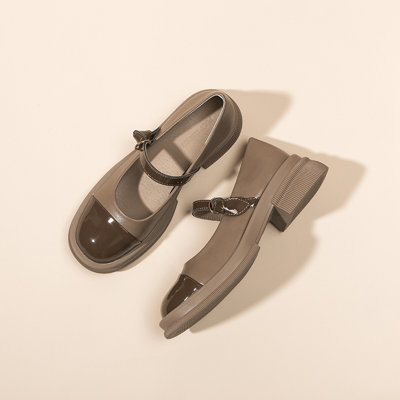 秋季玛丽珍鞋女鞋真皮复古撞色拼接厚底乐福鞋百搭小皮鞋软皮单鞋