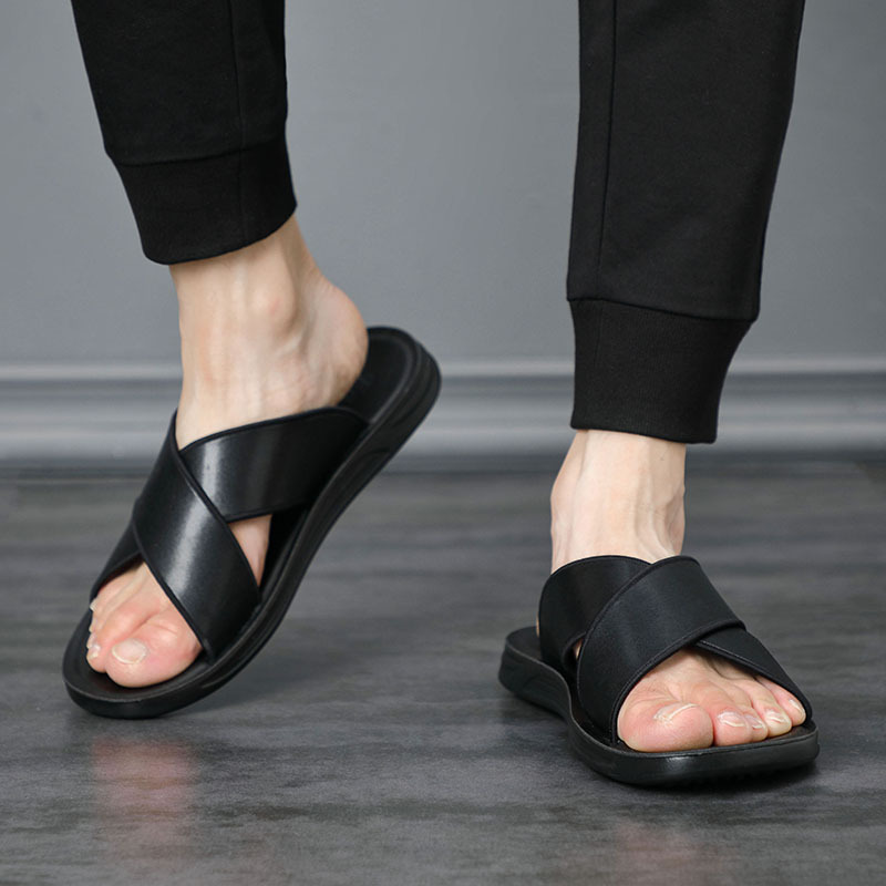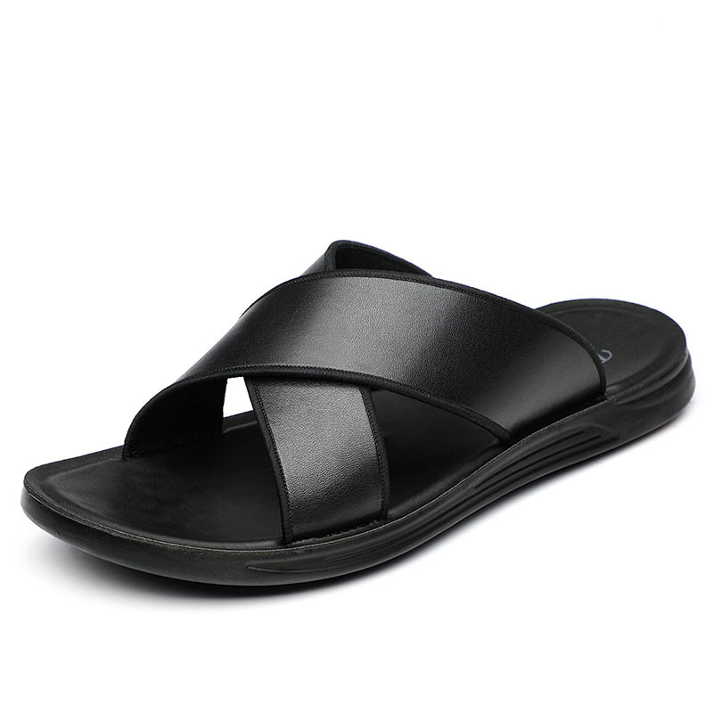 夏季新款男士凉拖休闲沙滩鞋真皮越南拖鞋室外时尚男鞋潮