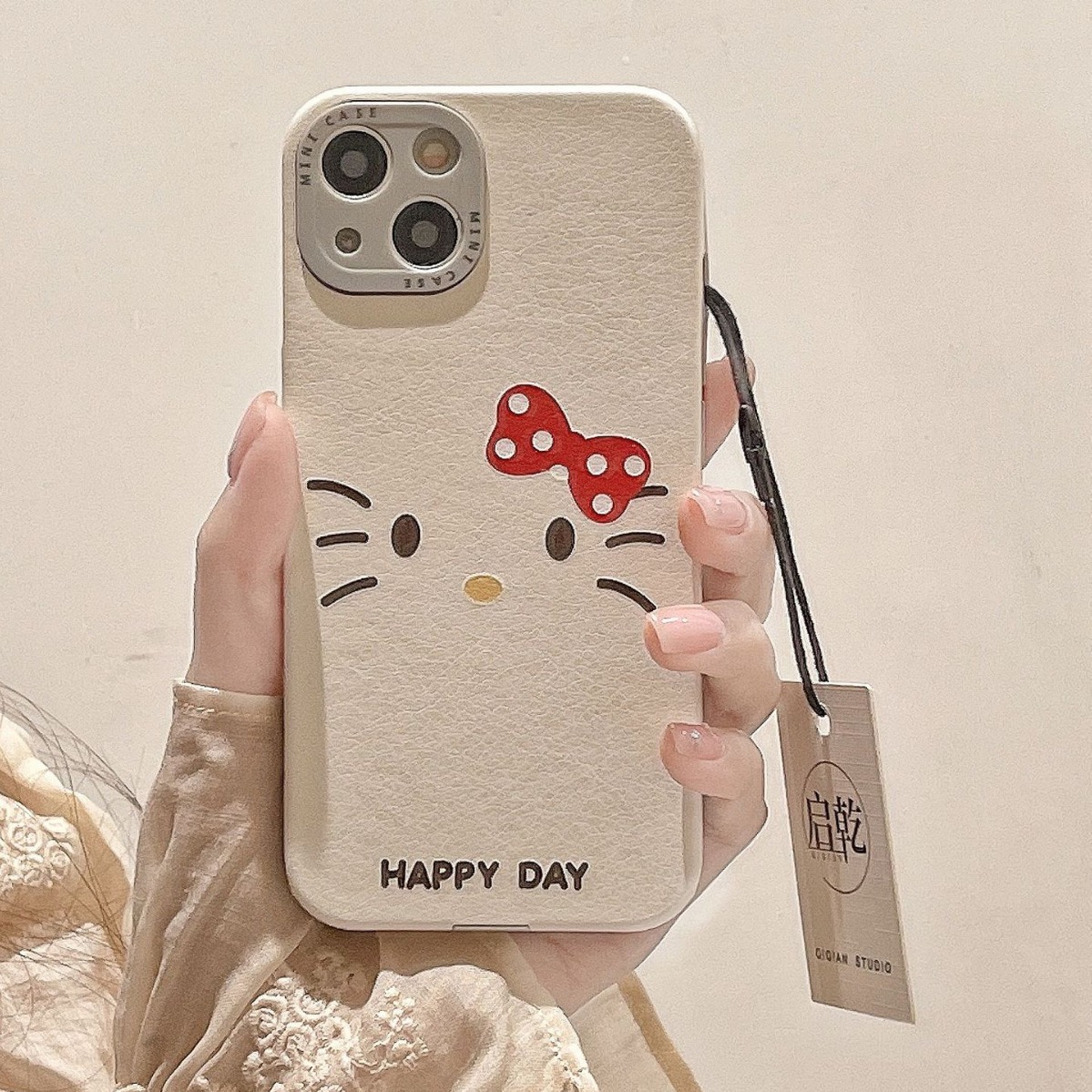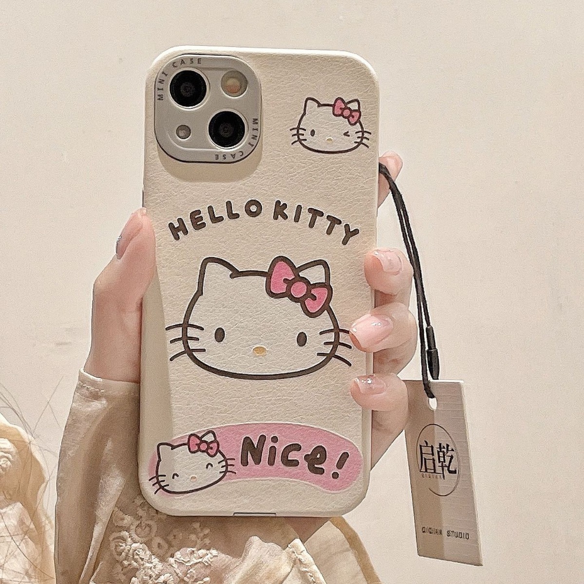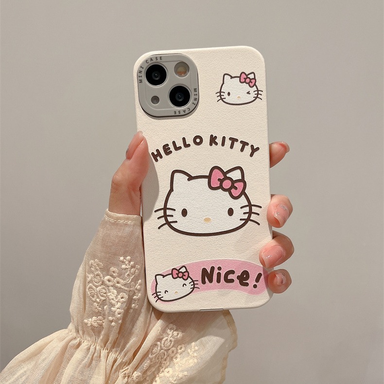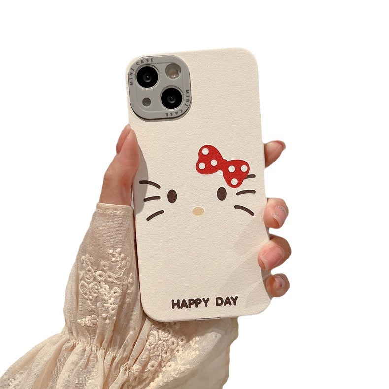 卡通涂鸦线条凯蒂猫适用iPhone15promax苹果14手机壳13皮质12全包