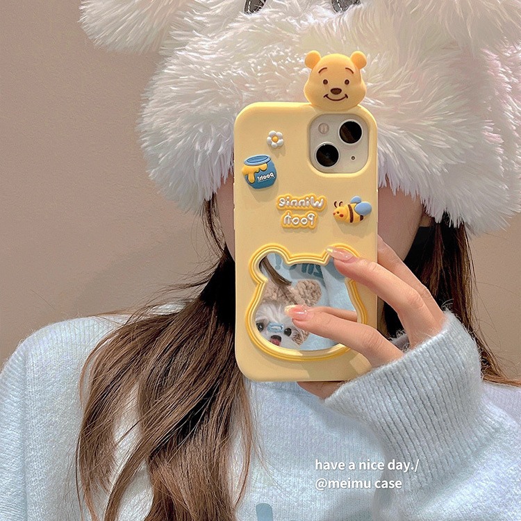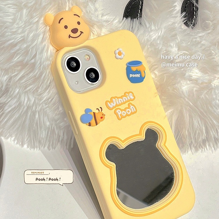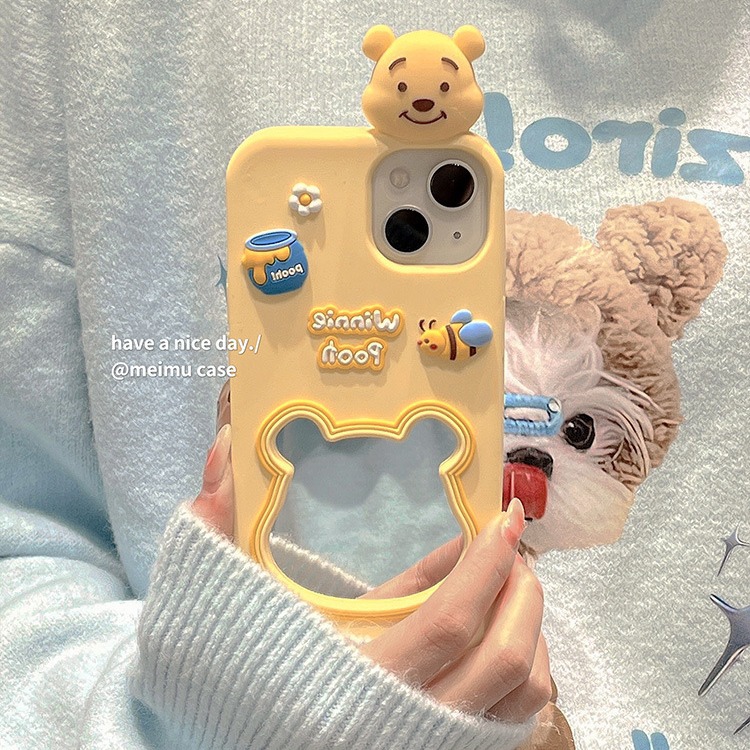 超火卡通维尼熊噗噗镜子适用iPhone15promax苹果14手机壳13硅胶12